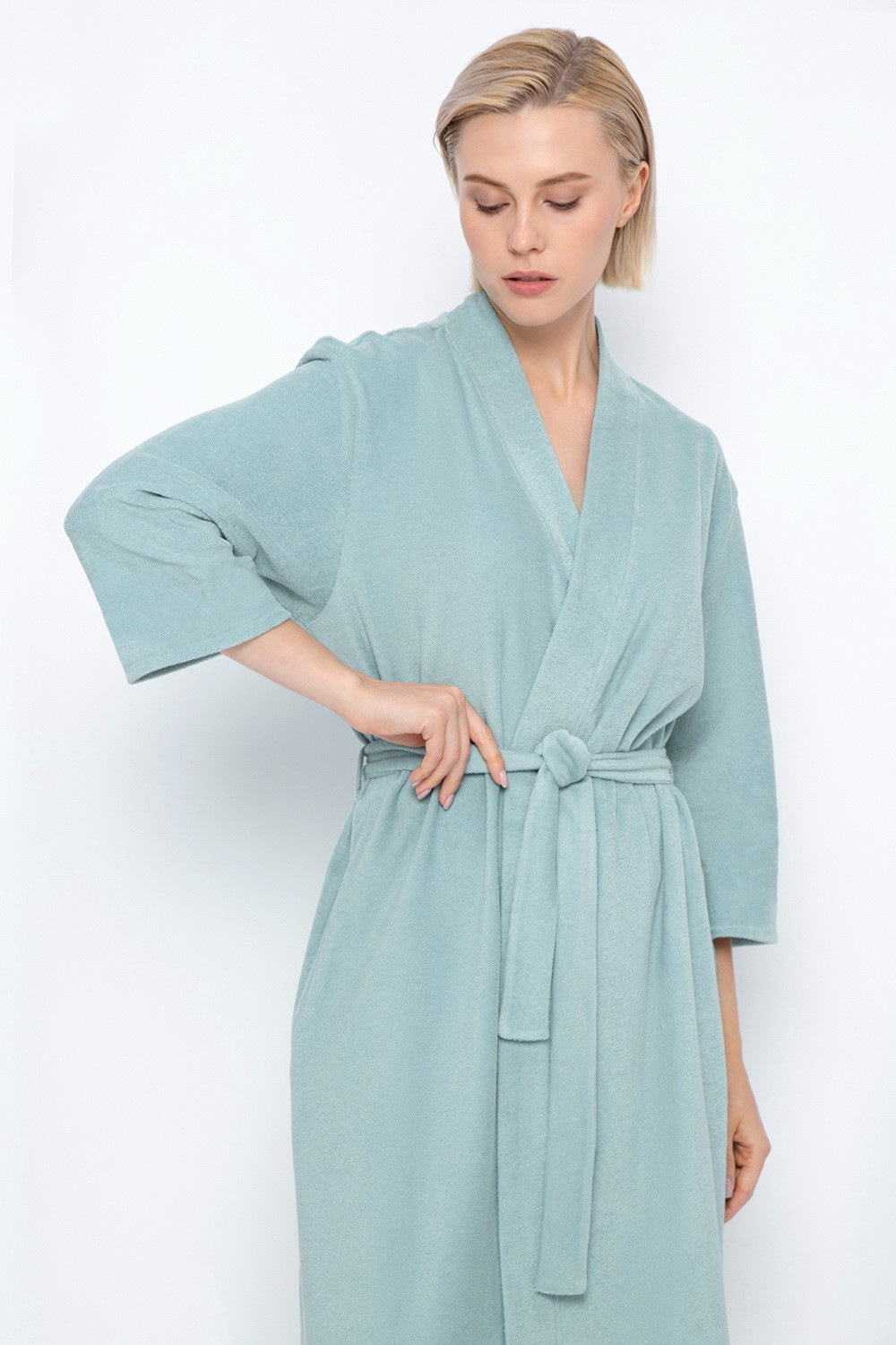 Уютный махровый халат из 100% натурального хлопка на запах с длинными рукавами. С помощью пояса можно регулировать посадку и силуэт. Мягкий ворс прекрасно впитывает влагу и сохраняет тепло.
