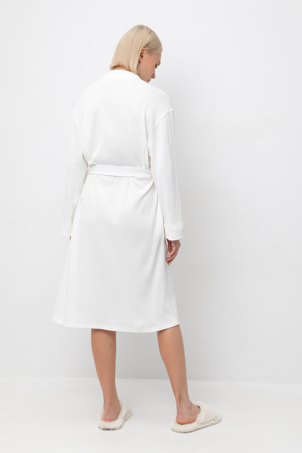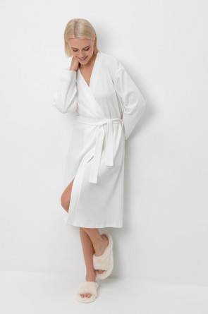 Халат из мягкого объемного трикотажа с добавлением эластичных волокон подарит атмосферу домашнего уюта и комфорта.