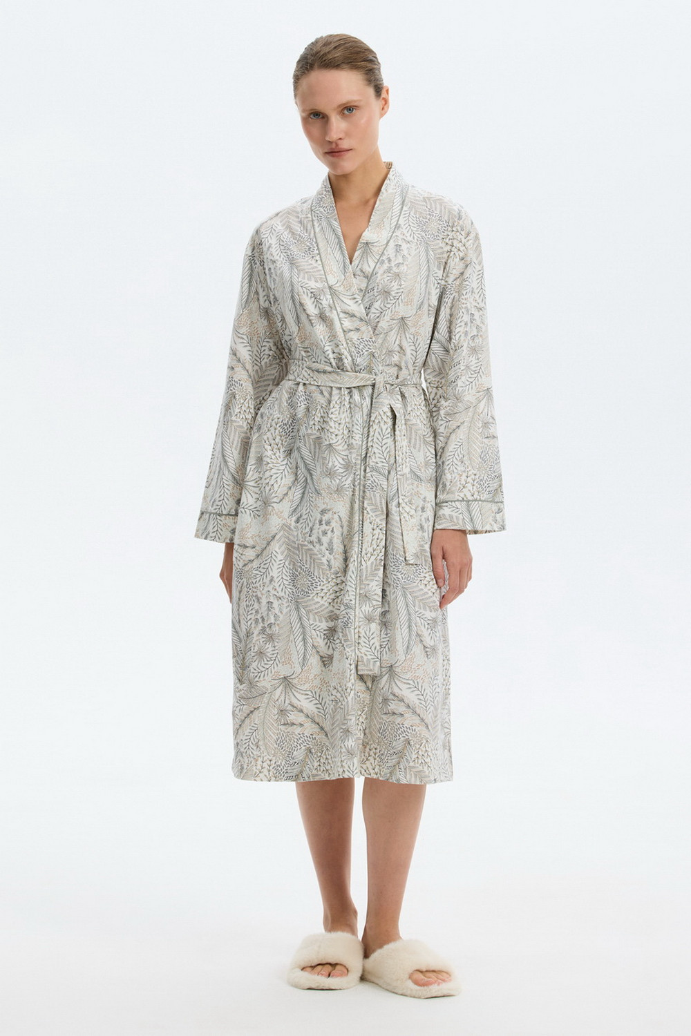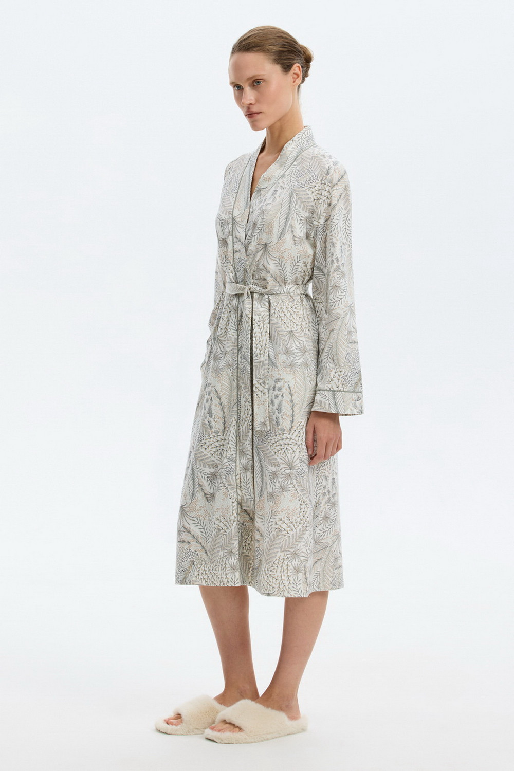 Халат из мягкого 100% хлопка подарит атмосферу домашнего уюта и комфорта. Карманы добавляют изделию практичности.
