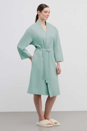 Халат из мягкого вафельного хлопка подарит атмосферу домашнего уюта и комфорта. Карманы добавляют изделию практичности.
