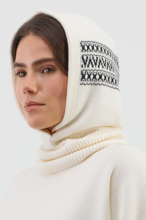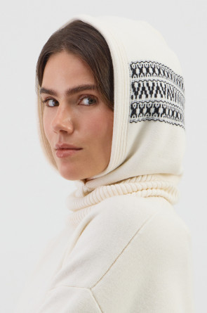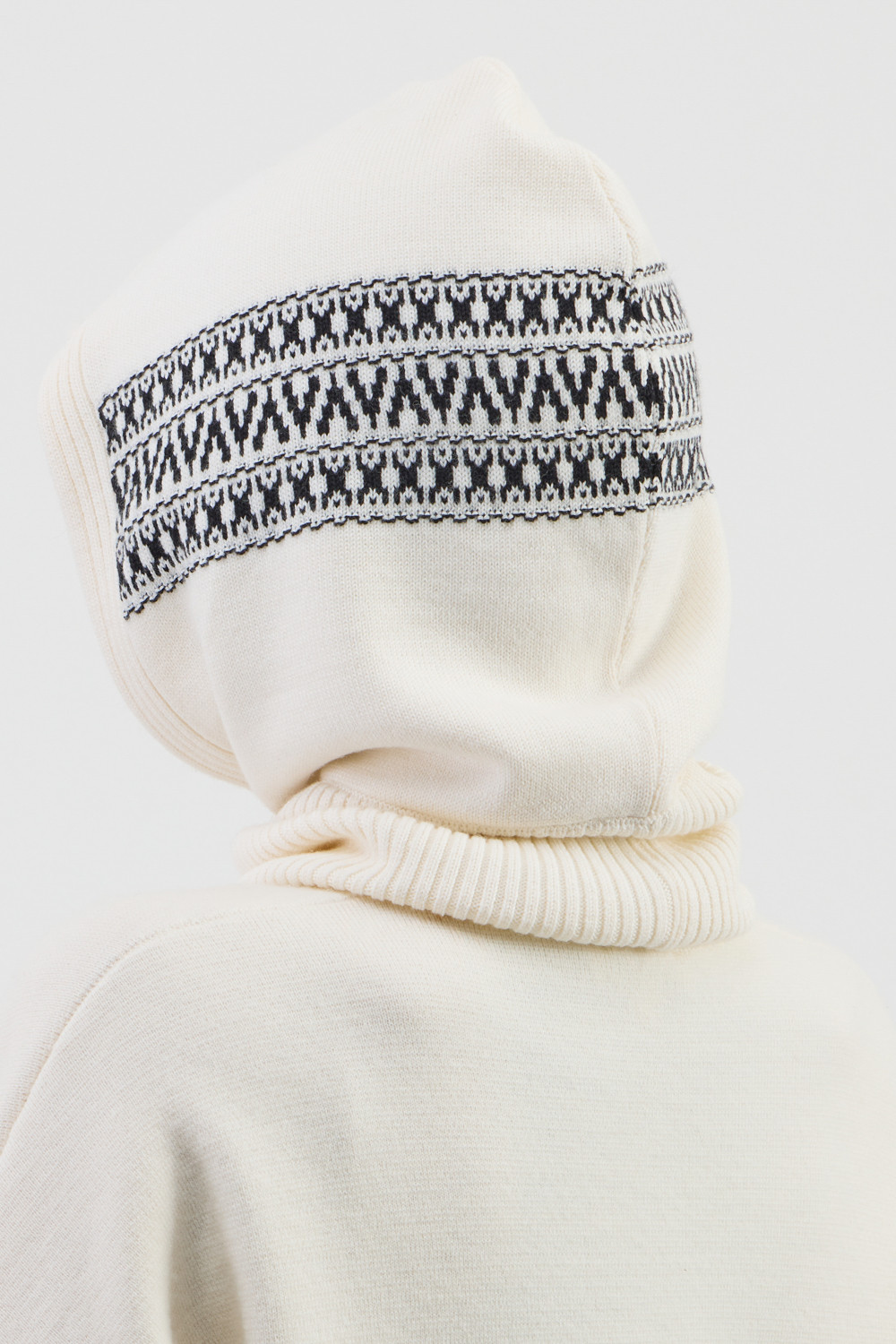 Теплый вязаный капор с глубоким капюшоном из шерсти и акрила. Шерсть в составе хорошо удерживает тепло, а волокна акрила делают изделие мягким и предотвращают деформацию. Лаконичный крой хорошо сочетается с верхней одеждой.