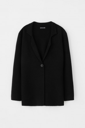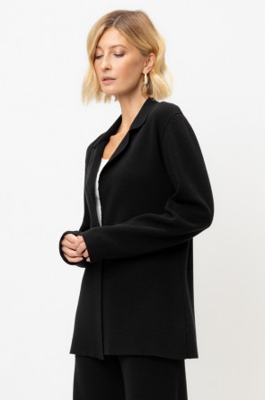 Женский жакет прямого кроя связан комбиниркой. Шерсть мериноса в составе сохраняет тепло, акрил делает изделие мягким. Прямой силуэт идеально подходит как к юбке, так и к брюкам.
