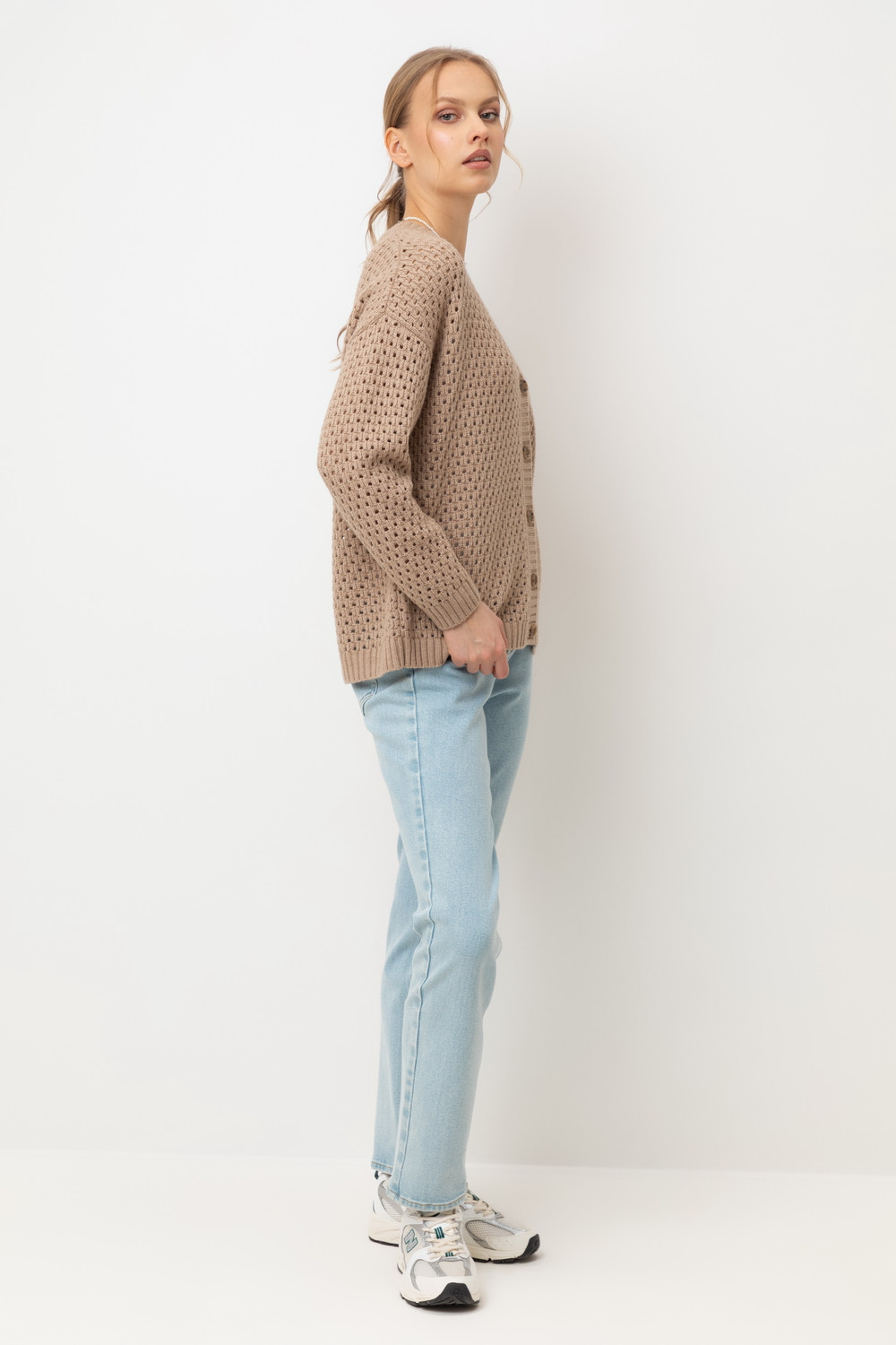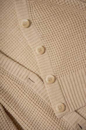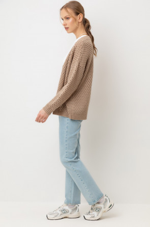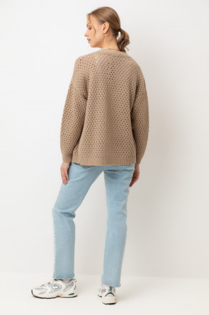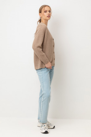Мягкий кардиган из ажурной вязки, выполненный из первоклассного материала, сочетает в себе шерсть и акрил, что создает атмосферу комфорта. Он приятно облегает тело, не вызывает дискомфорта и прекрасно сохраняет свою форму.