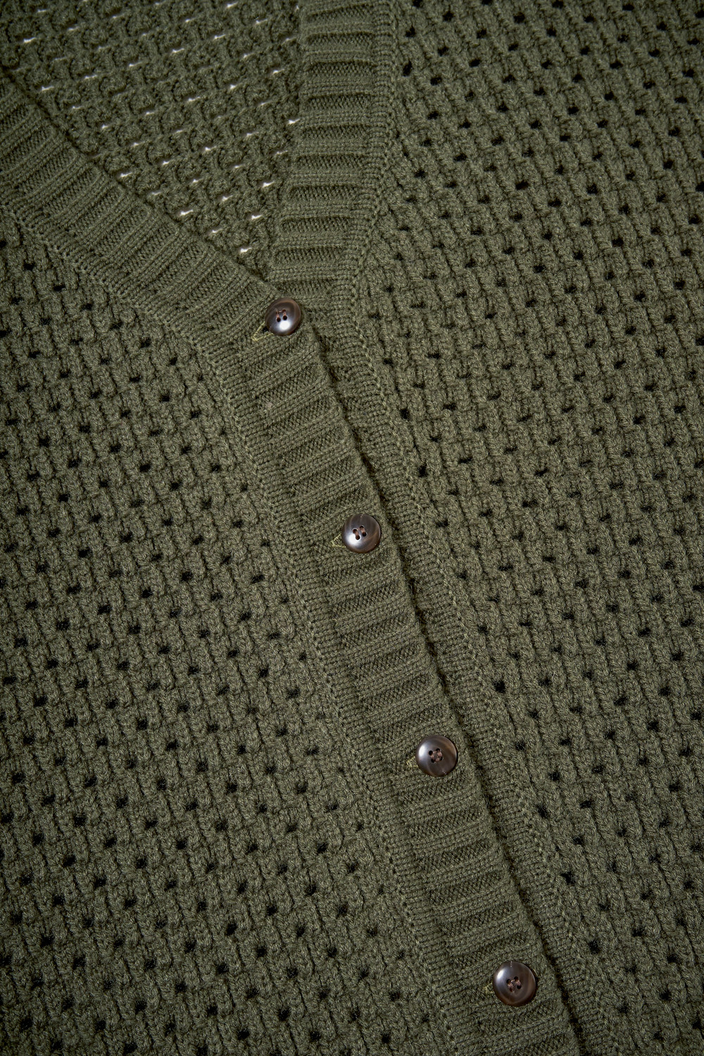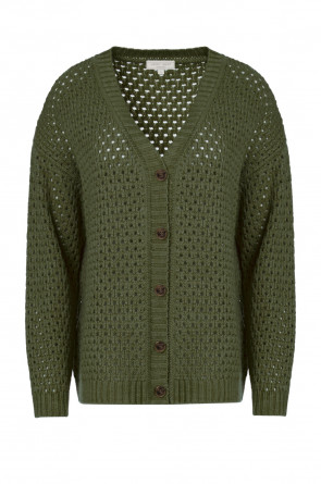 Мягкий кардиган из ажурной вязки, выполненный из первоклассного материала, сочетает в себе шерсть и акрил, что создает атмосферу комфорта. Он приятно облегает тело, не вызывает дискомфорта и прекрасно сохраняет свою форму.