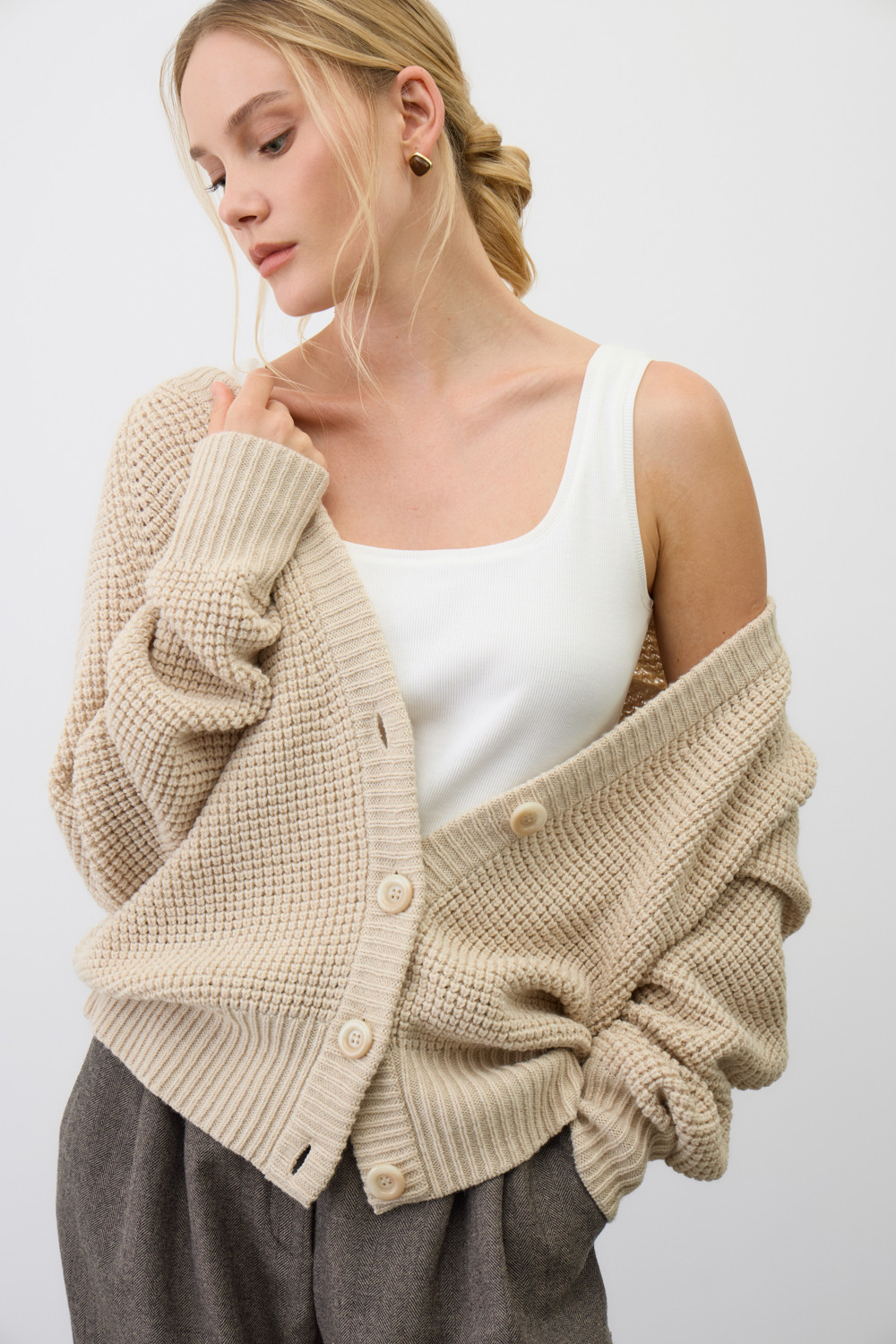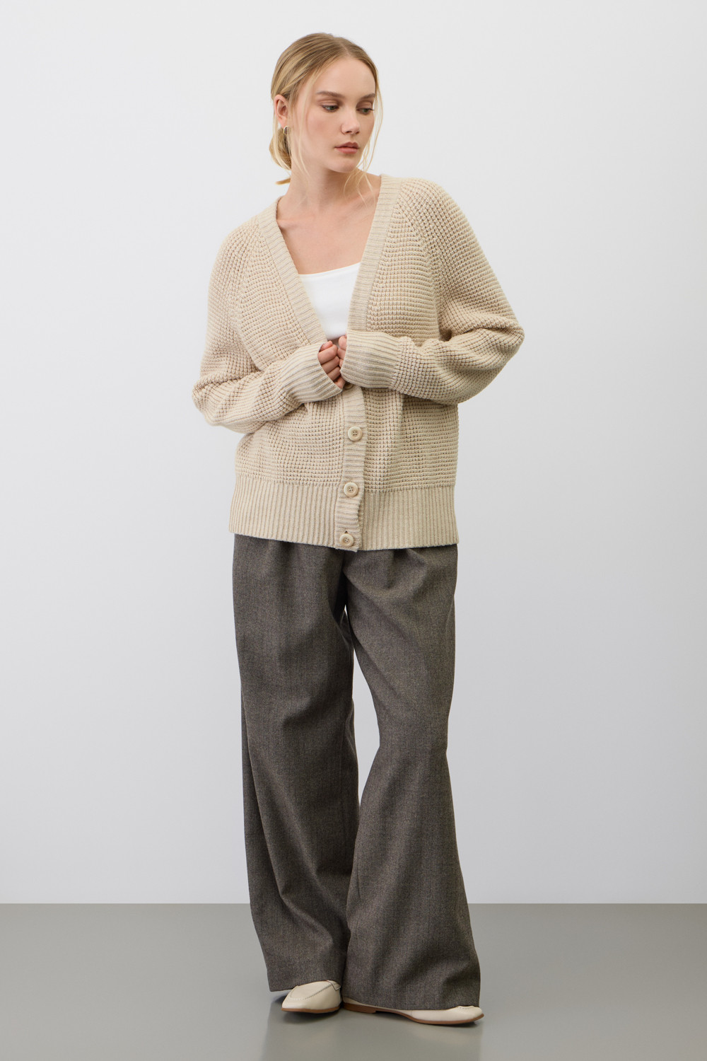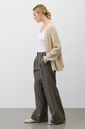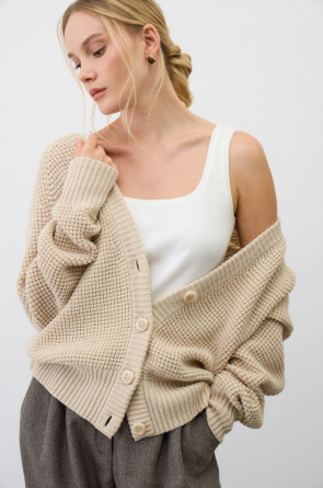 Мягкий кардиган из ажурной вязки изготовленный из высококачественной пряжи. Уникальное сочетание шерсти и акрила дарит ощущение уюта, приятно прилегает к телу, является гипоаллергенным и отлично сохраняет форму.
