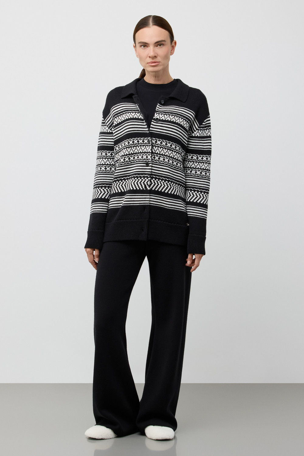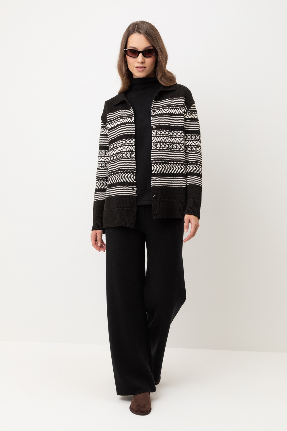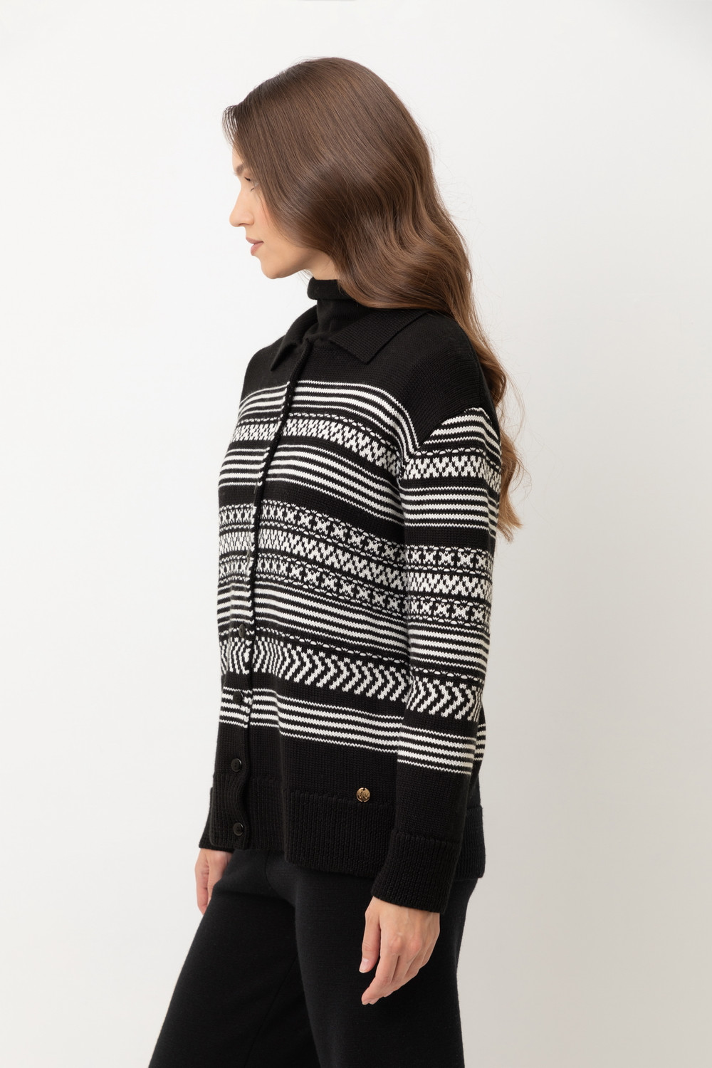 Лаконичный кардиган в скандинаском стиле из премиальной пряжи, созданный с использованием инновационной технологии смешанного волокна. Деликатное сочетание шерсти и акрила обеспечивает непревзойденный комфорт: изделие нежно облегает фигуру, гарантирует мягкость прикосновения и сохраняет безупречную форму.