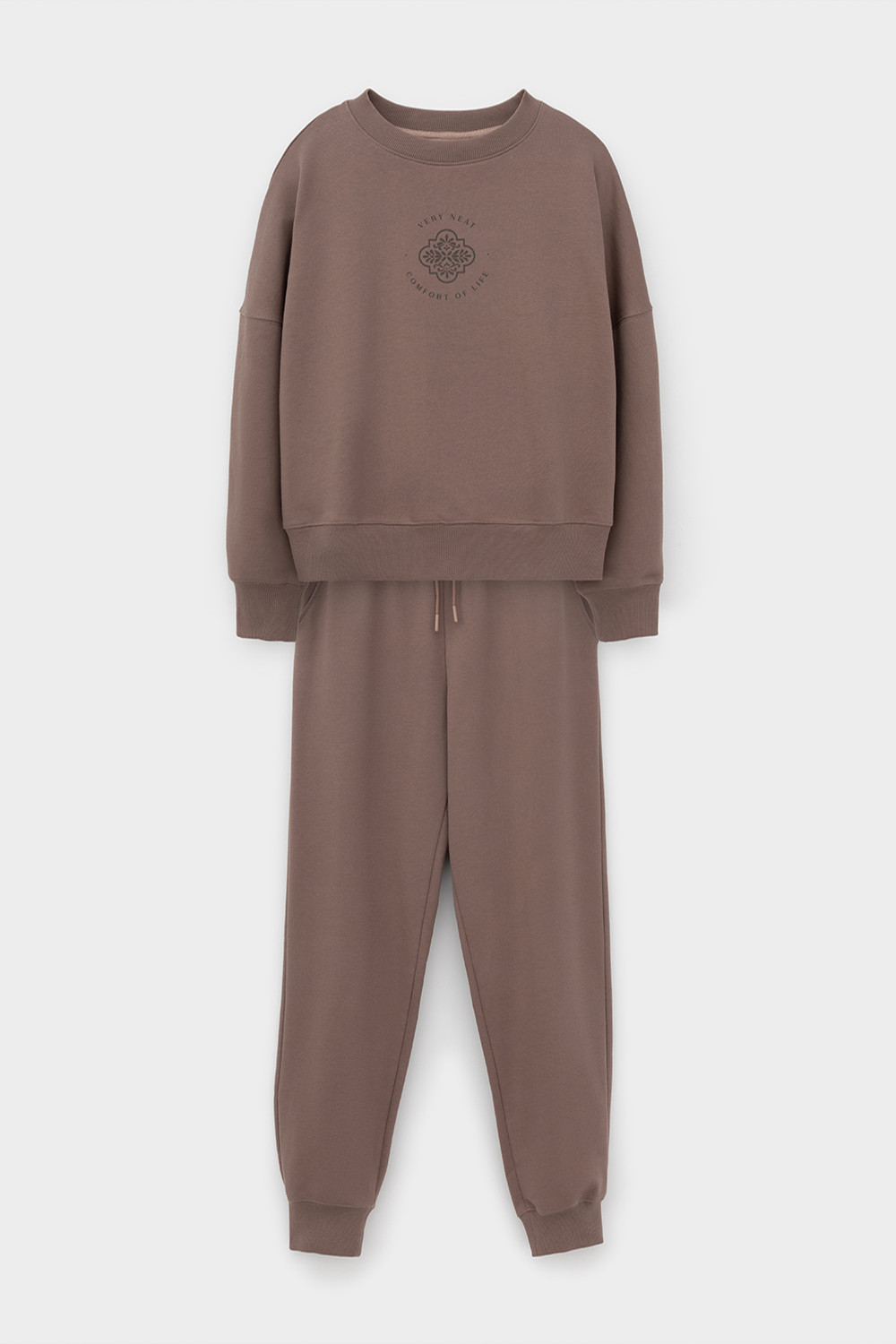 Комплект из 100% петельчатого футера. Мягкий пояс и спортивный силуэт заставят вас влюбиться в его комфорт!