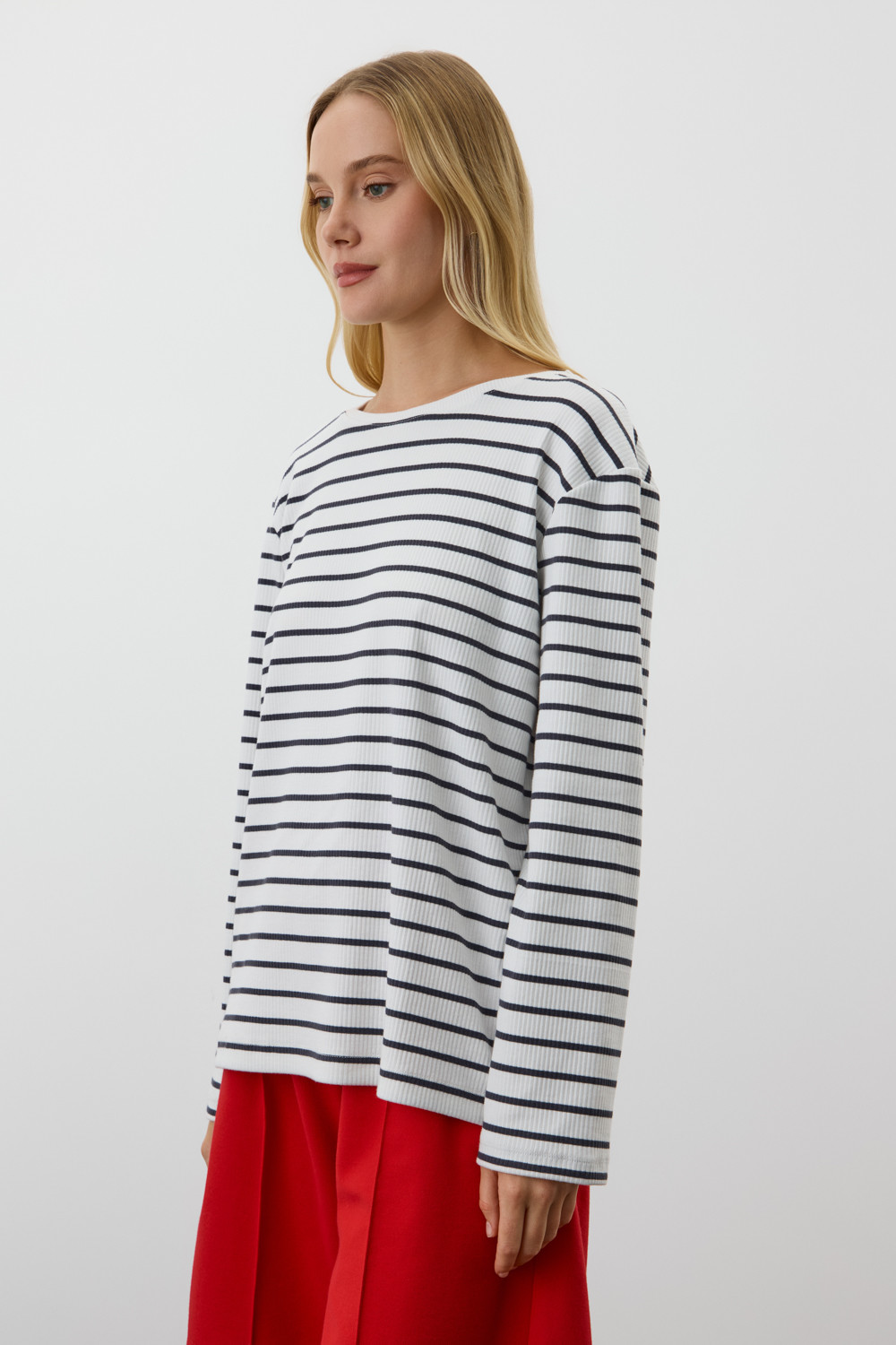 Комфортный лонгслив из хлопка со спандексом является базовым элементом гардероба и универсальным для повседневных образов.