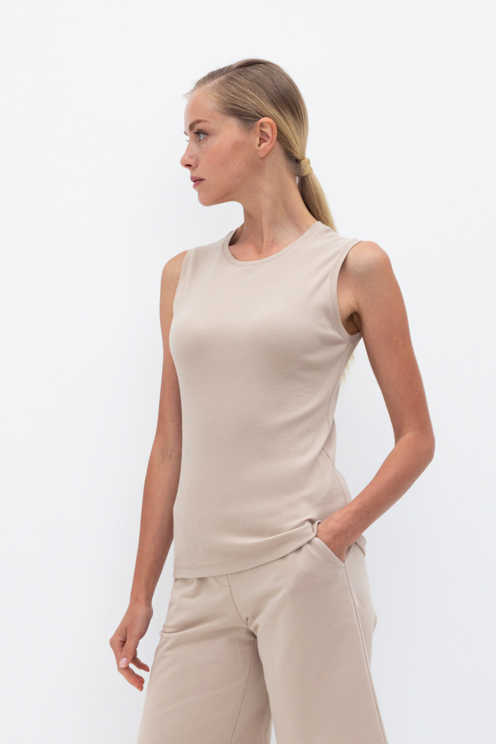 Базовая майка из трикотажного полотна в рубчик с добавлением эластана.