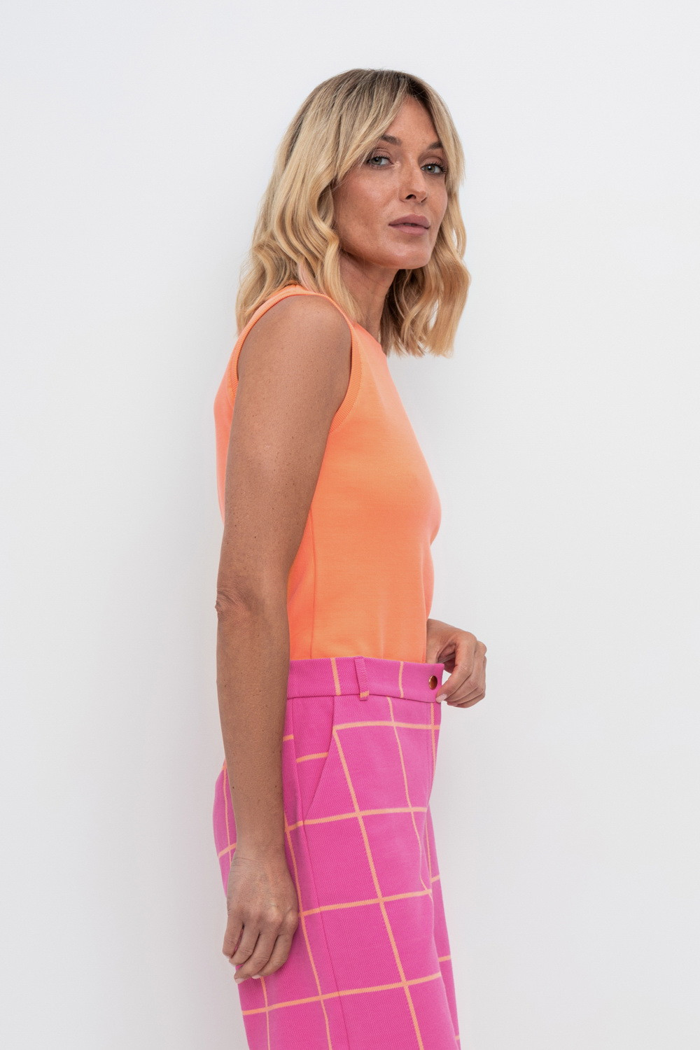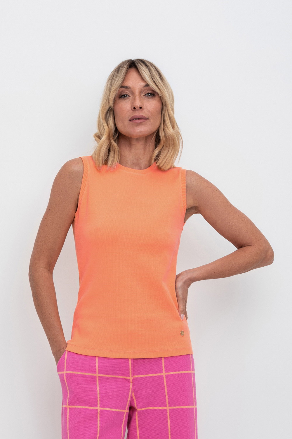 Базовая майка из трикотажного полотна в рубчик с добавлением эластана.