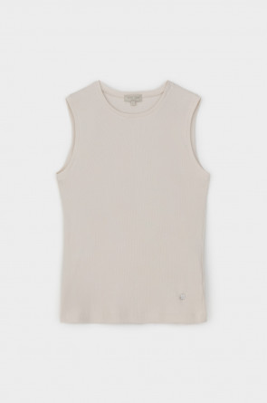 Базовым элементом гардероба является топ из эластичного трикотажа в рубчик. Широкое плечо и высокий вырез делают изделие комфортным и универсальным в носке.