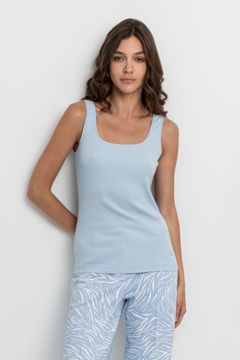 Базовая майка из трикотажного полотна в рубчик с добавлением эластана.