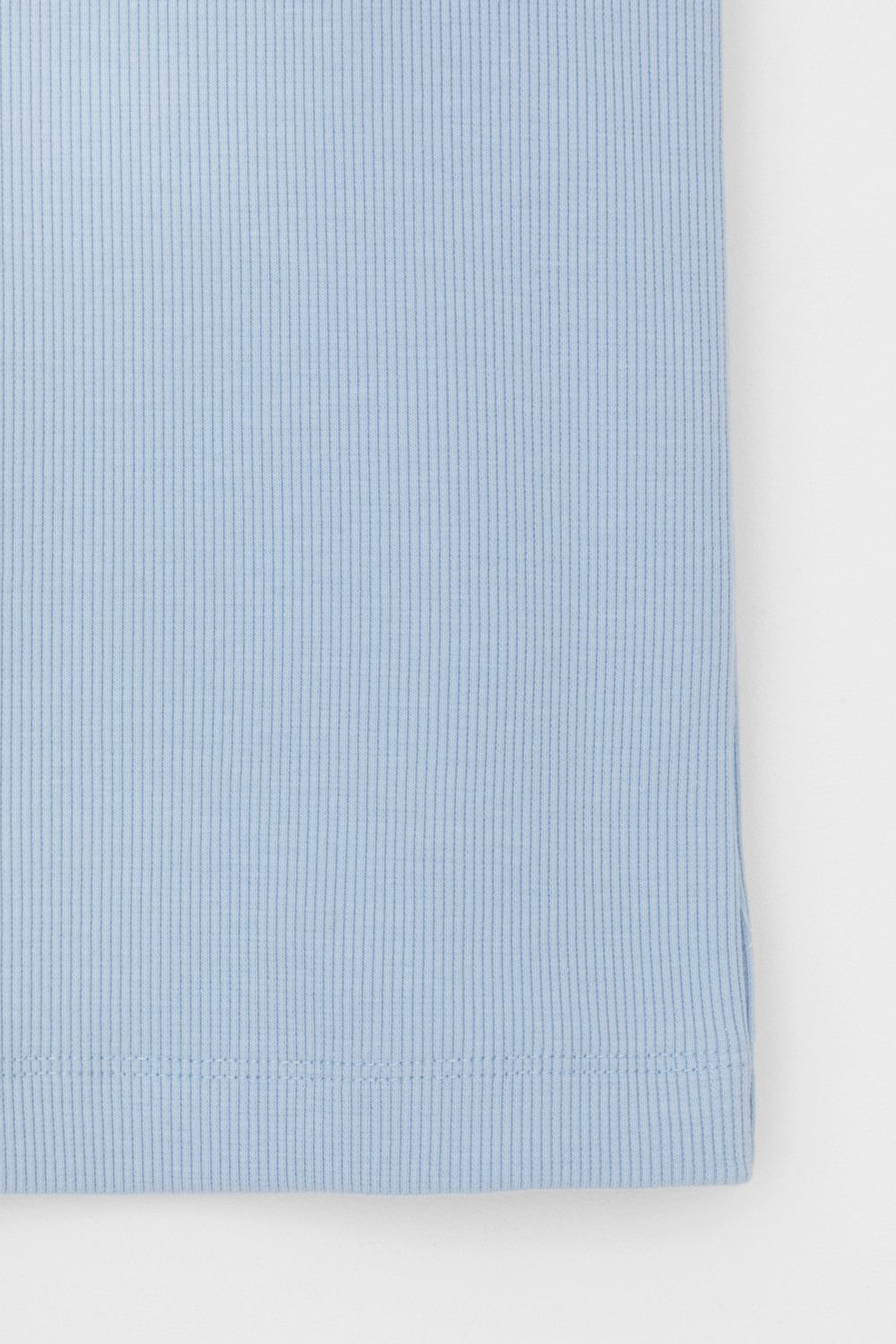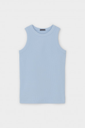 Классическим элементом гардероба является базовый топ в рубчик. Бретели стандартной ширины, круглый вырез и добавление эластана делают изделие комфортным в носке и универсальным в повседневной жизни. Нежно-голубой цвет добавляет женственности и легкости в образ.