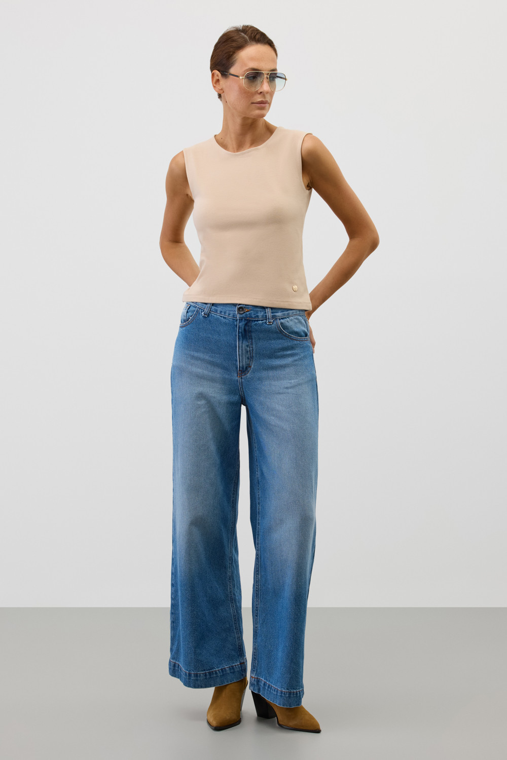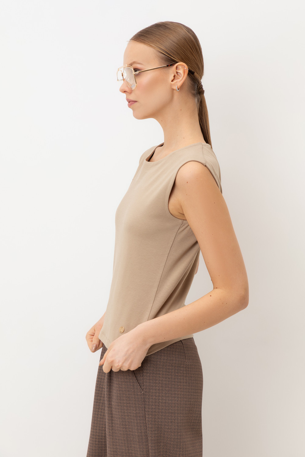 Классическим элементом гардероба является базовый топ из хлопка. Широкие бретели делают изделие комфортным в носке и универсальным в повседневной жизни.
