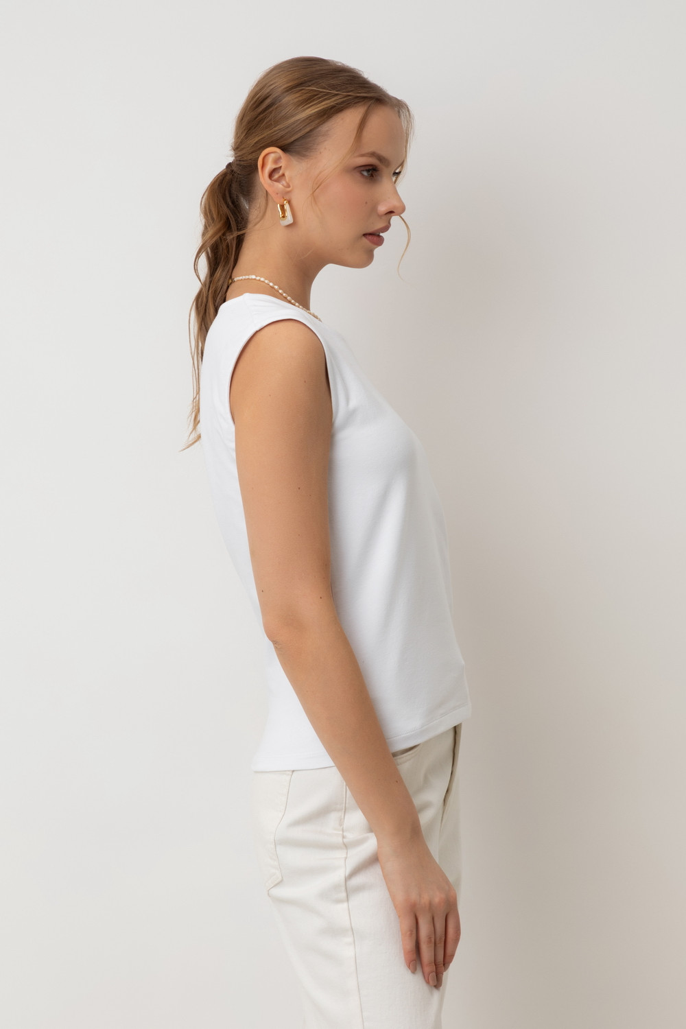 Классическим элементом гардероба является базовый топ из хлопка. Широкие бретели делают изделие комфортным в носке и универсальным в повседневной жизни.