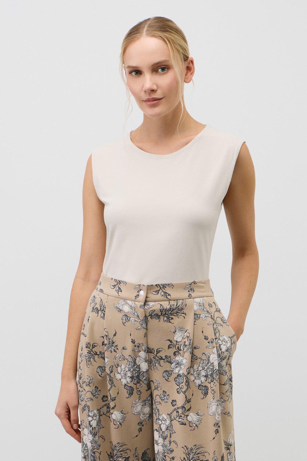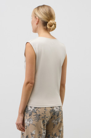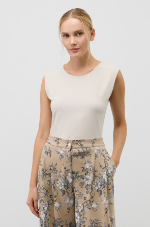 Классическим элементом гардероба является базовый топ из хлопка. Широкие бретели и высокий вырез делают изделие комфортным в носке и универсальным в повседневной жизни.