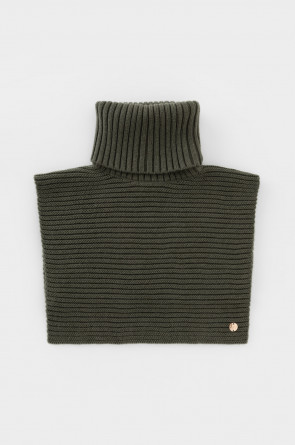 Уютная вязаная манишка с высоким воротником из шерсти и акрила. Шерсть в составе хорошо удерживает тепло, а волокна акрила делают изделие мягким и предотвращают деформацию и появление катышек. Лаконичный крой хорошо сочетается с верхней одеждой.