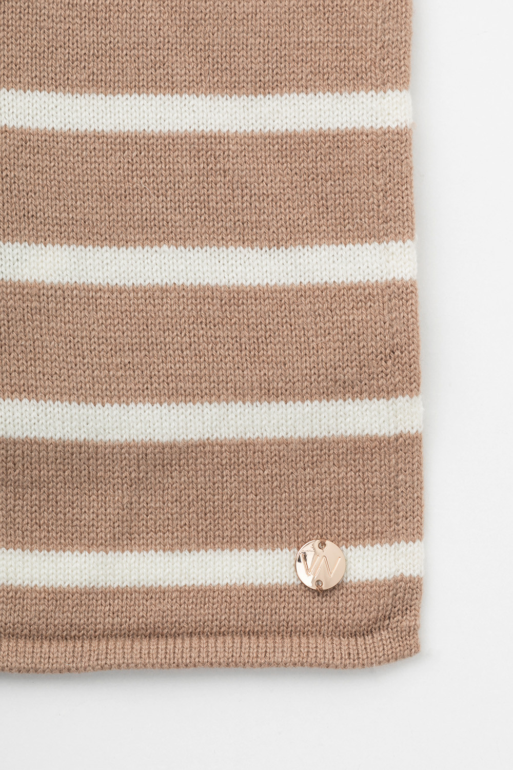 Уютная вязаная манишка с высоким воротником из шерсти и акрила. Шерсть в составе хорошо удерживает тепло, а волокна акрила делают изделие мягким и предотвращают деформацию и появление катышек. Лаконичный крой хорошо сочетается с верхней одеждой.