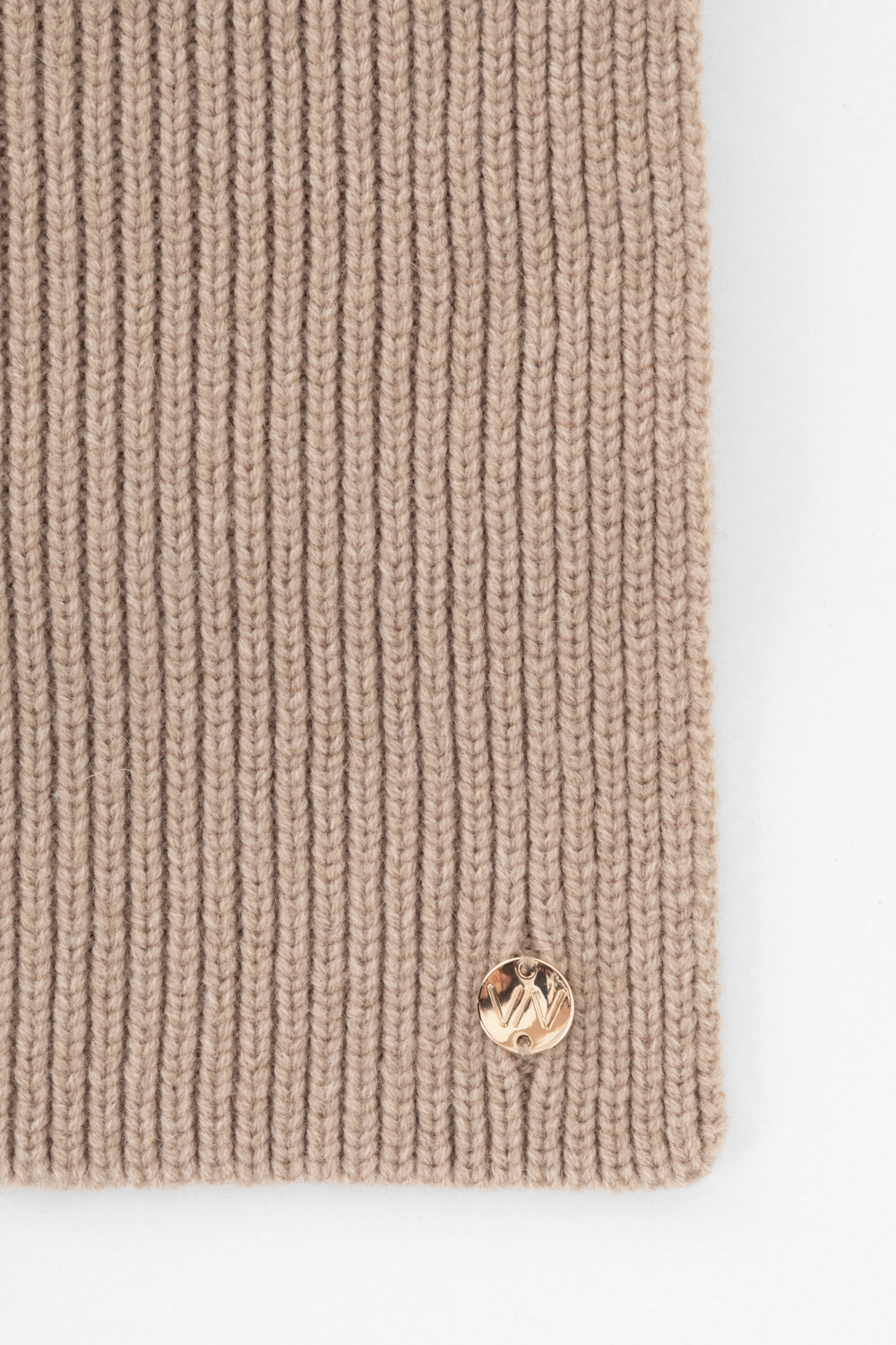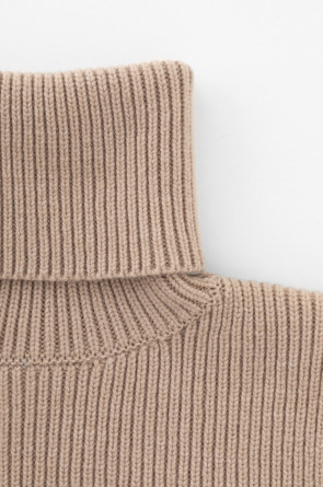 Уютная вязаная манишка с высоким воротником из шерсти и акрила. Шерсть в составе хорошо удерживает тепло, а волокна акрила делают изделие мягким и предотвращают деформацию и появление катышек. Лаконичный крой хорошо сочетается с верхней одеждой.