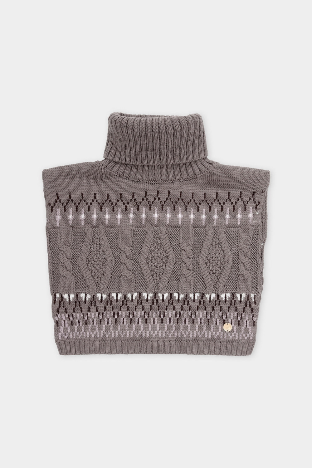 Уютная вязаная манишка с высоким воротником из шерсти и акрила. Шерсть в составе хорошо удерживает тепло, а волокна акрила делают изделие мягким и предотвращают деформацию и появление катышек. Лаконичный крой хорошо сочетается с верхней одеждой.