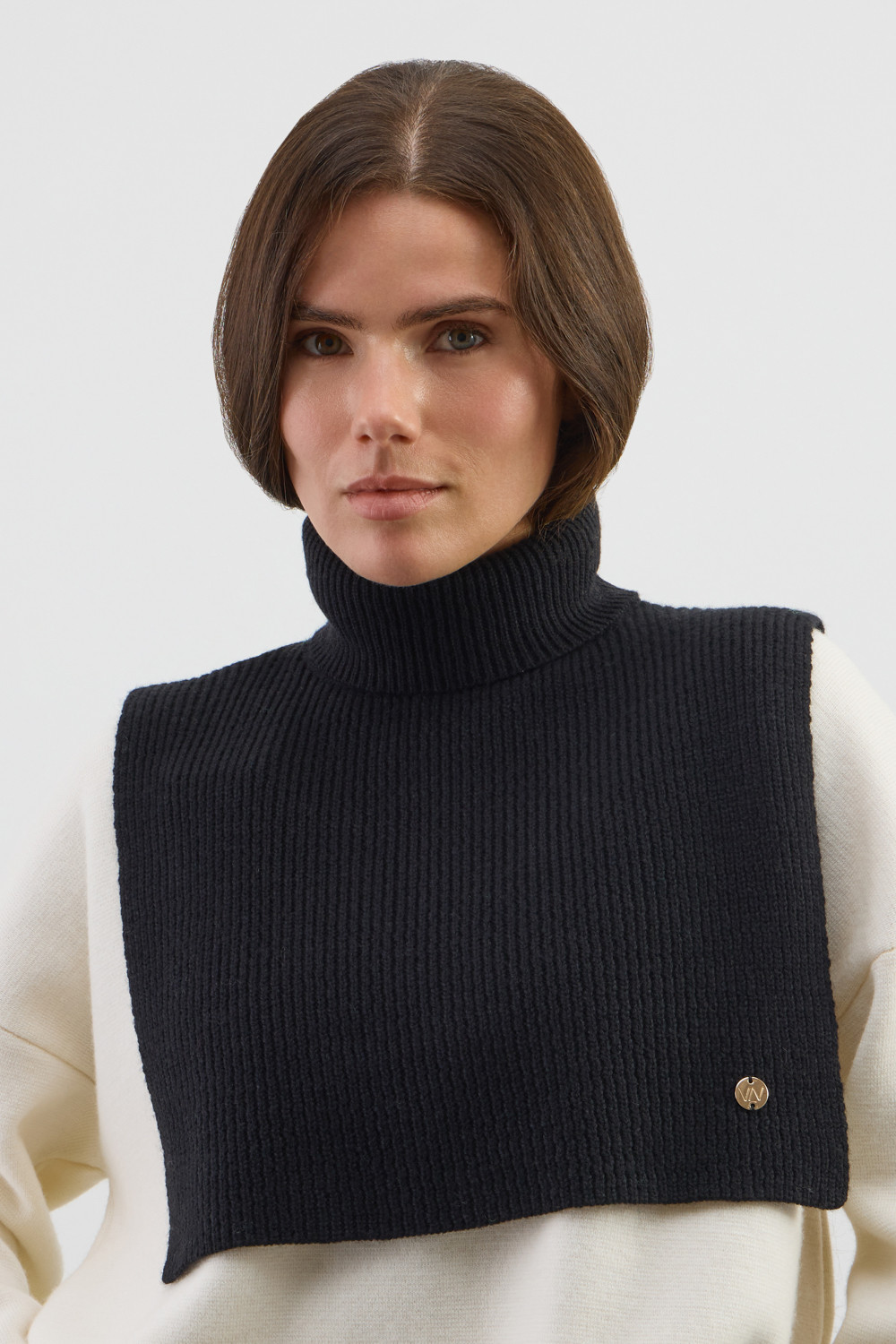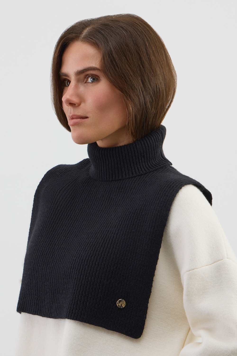 Манишка из шерсти с высоким воротником станет стильным и теплым аксессуаром для холодых дней. Шерсть хорошо сохраняет тепло, а волокна акрила делают манишку мягкой.