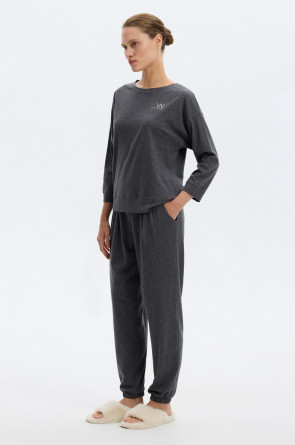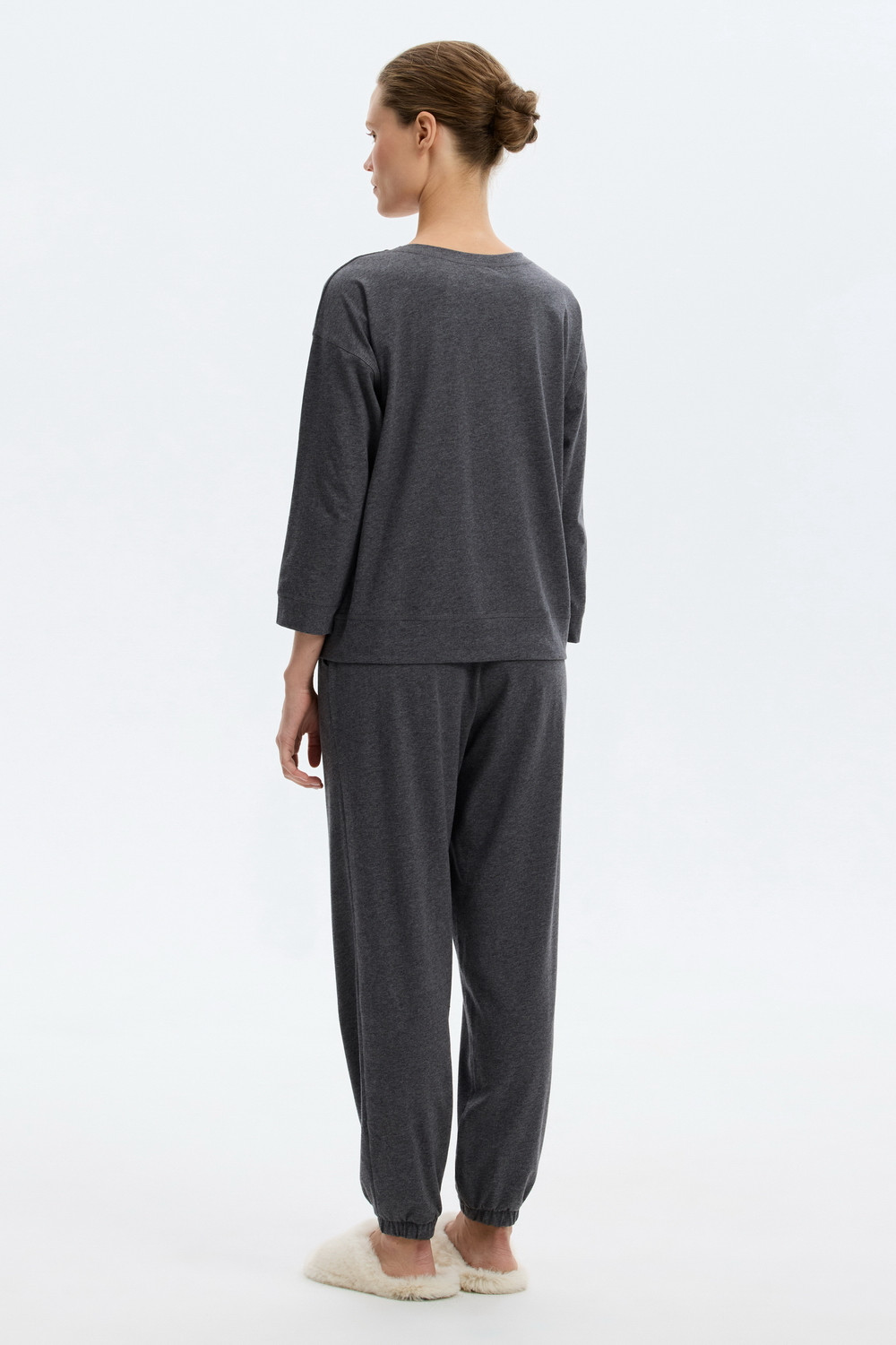 Домашний уют с комплектом из высококачественного хлопка. Зауженный крой брюк и джемпер со спущенным плечом созданы для придания максимального комфорта.
