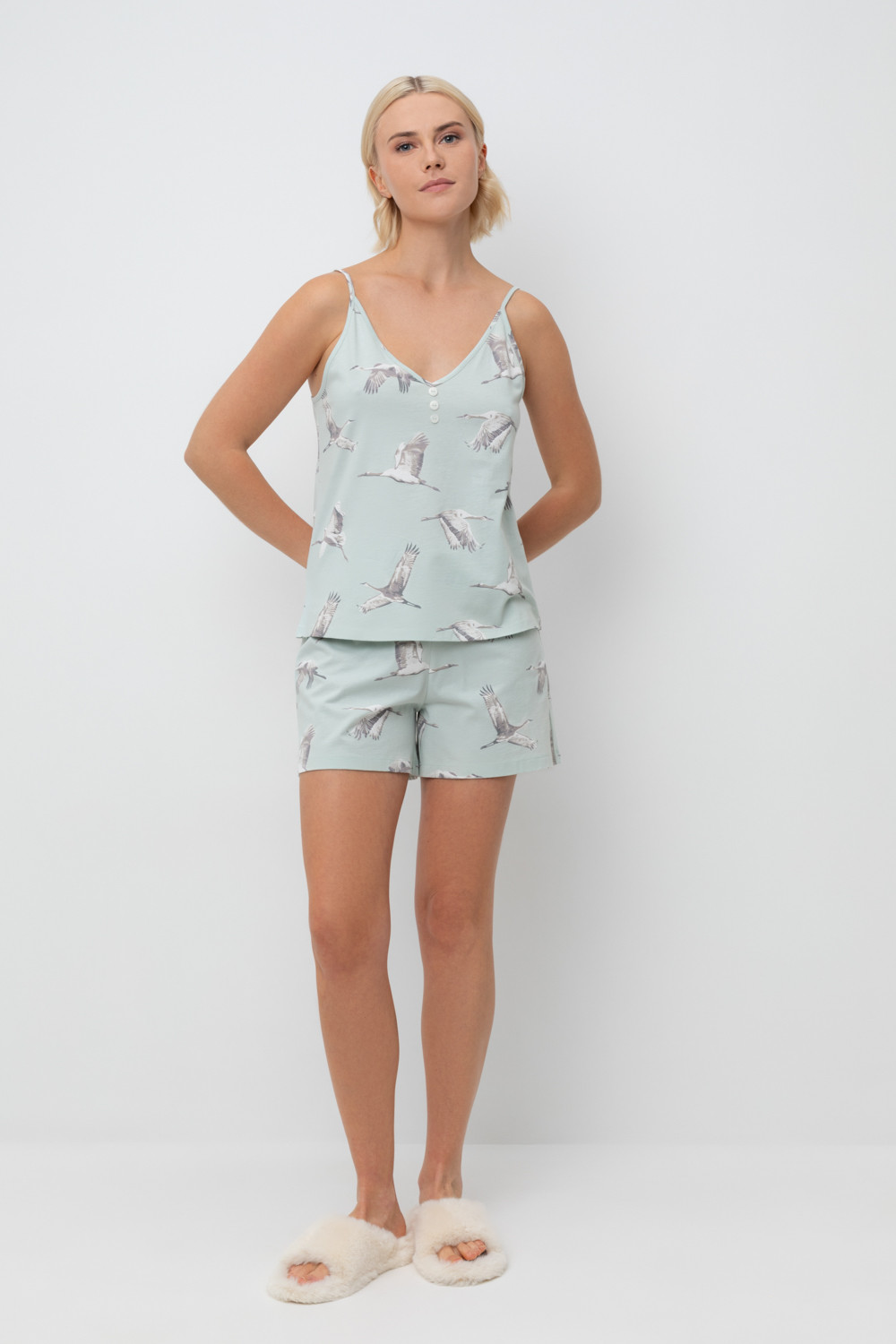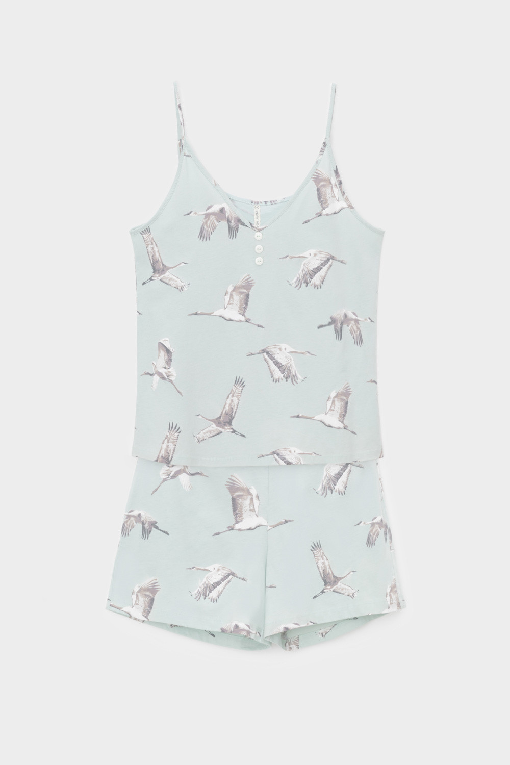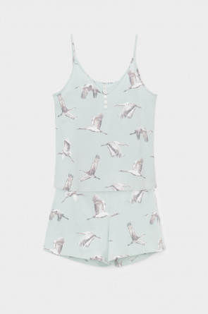 Комплект из высококачественного гребенного хлопка выполнен с вниманием к деталям. Регулируемые бретели позволяют подстроить их под ваши индивидуальные предпочтения, а комфортный пояс шорт обеспечивает свободу движений.