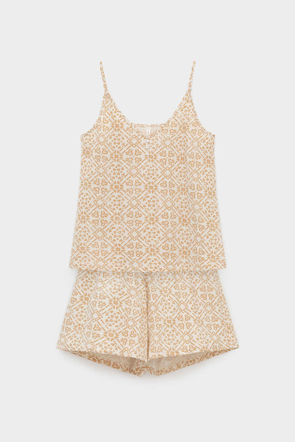 Комплект из высококачественного гребенного хлопка выполнен с вниманием к деталям. Регулируемые бретели позволяют подстроить их под ваши индивидуальные предпочтения, а комфортный пояс шорт обеспечивает свободу движений.