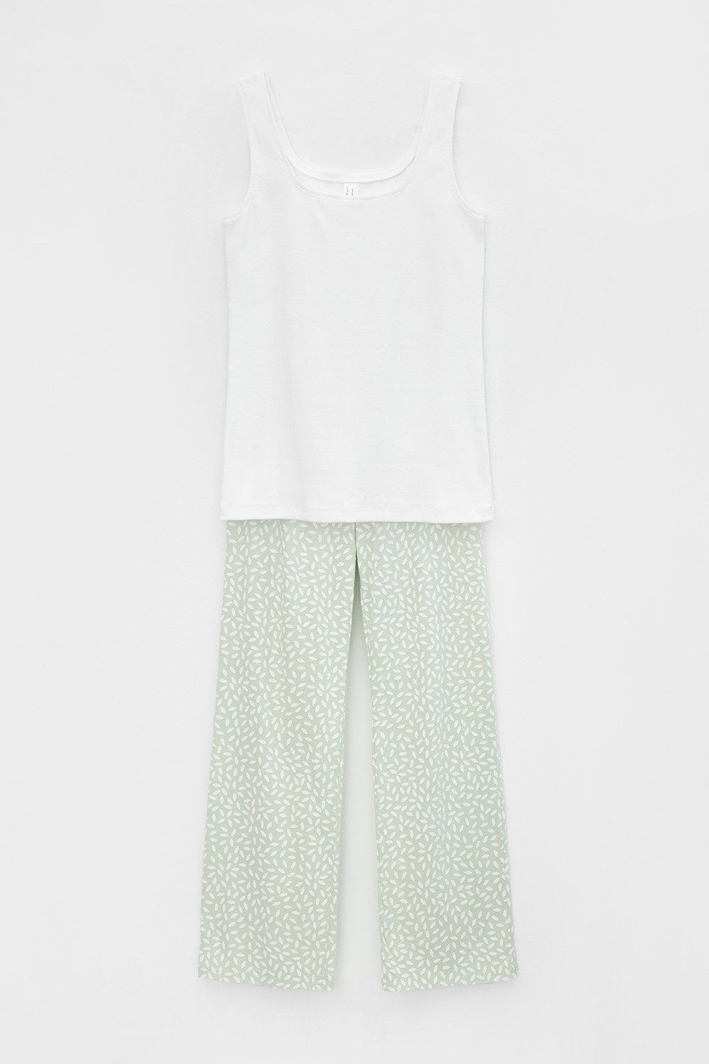 Комплект для комфортного сна из трикотажного полотна с набивным рисунком. Майка из эластичного трикотажа с добавлением лайкры в рубчик. Брюки с мягким поясом на резинке удобно садятся по фигуре. Гладкий материал приятен к телу, не теряет форму и позволяет коже дышать.