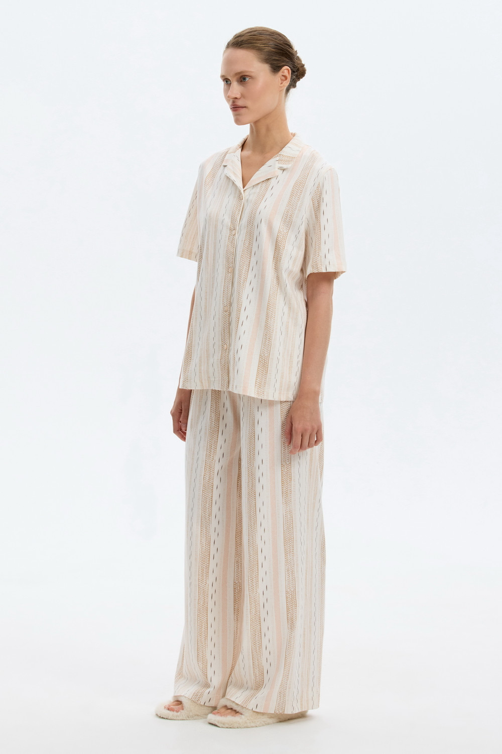 Подарите себе ощущение домашнего уюта с комплектом из высококачественного хлопка. Свободный крой брюк и рубашка идеальной посадки созданы для придания максимального комфорта и практичности.