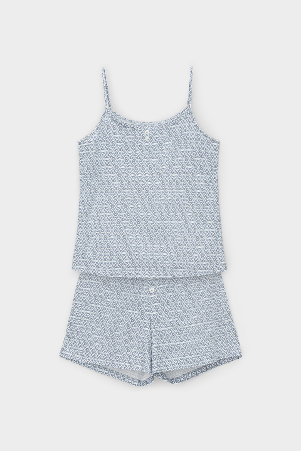 Комплект из высококачественного гребенного хлопка выполнен с вниманием к деталям. Регулируемые бретели позволяют подстроить их под ваши индивидуальные предпочтения, а комфортный пояс шорт обеспечивает свободу движений.