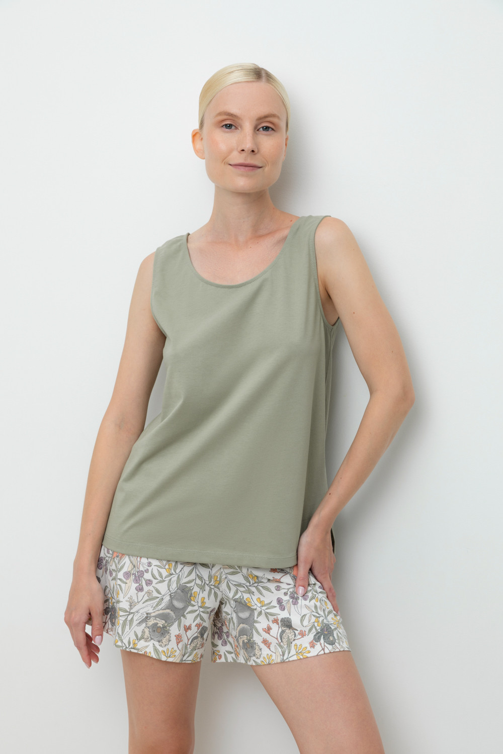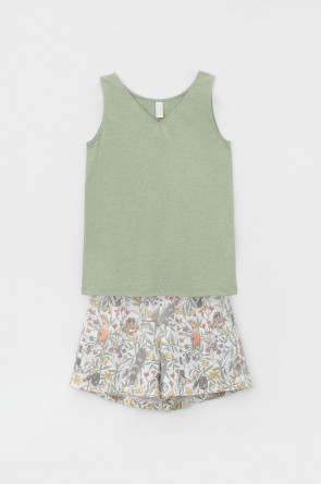Комплект для комфортного сна из 100% натурального хлопка. Майка свободного силуэта с боковыми разрезами, шорты с мягким поясом на резинке. Гладкий материал приятен к телу и позволяет коже дышать.