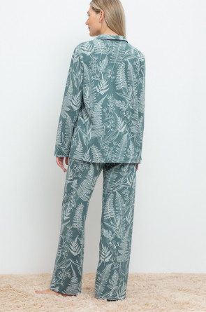 Комплект для комфортного сна и отдыха из набивного трикотажа из 100% натурального хлопка. Рубашка с длинными рукавами на пуговицах. Брюки с мягким поясом на резинке. Гладкий материал приятен к телу, не теряет форму и позволяет коже дышать.