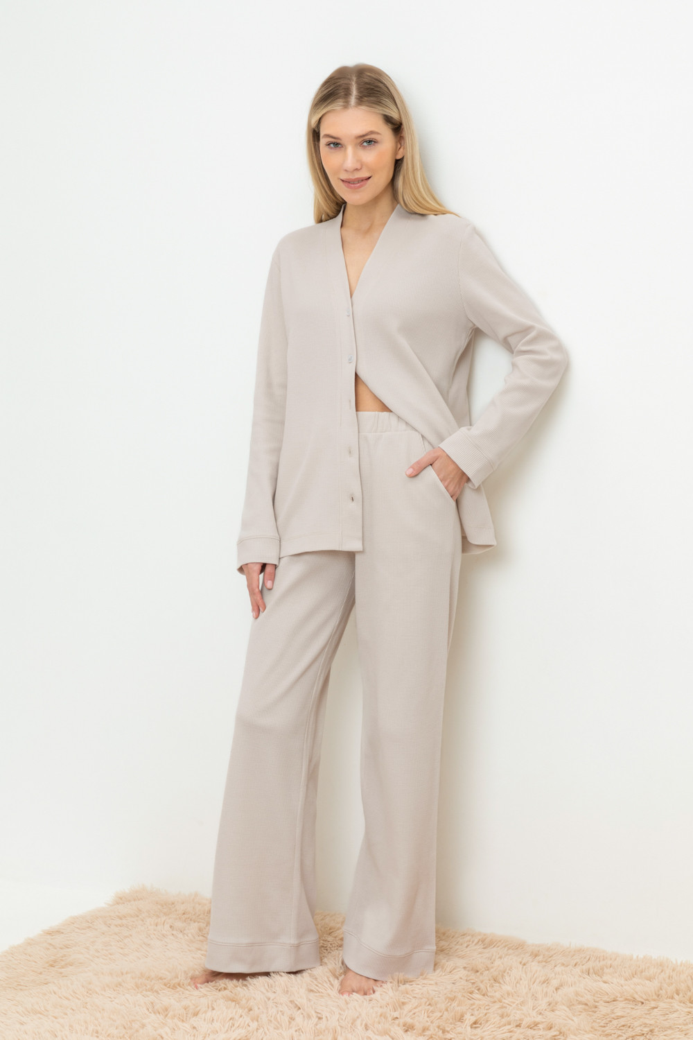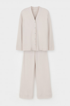 Комплект для комфортного сна и отдыха из вафельного полотна из 100% натурального хлопка. Рубашка с длинными рукавами и манжетами на пуговицах. Брюки с карманами и мягким поясом на резинке. Материал приятен к телу, не теряет форму и позволяет коже дышать.