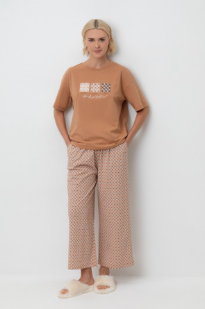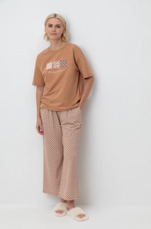 Комплект из высококачественного гребенного хлопка. Мягкий на ощупь принт на футболке выполнен на основе водных красок, что обеспечивает устойчивость к многократным стиркам. Брюки с удобным поясом на резинке и практичными карманами добавляют практичности и удобства.