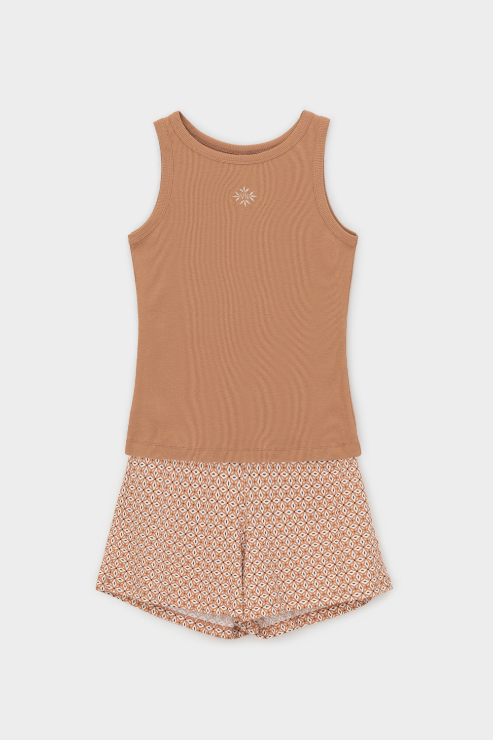 Топ из мягкого эластичного трикотажа в рубчик и шорты из высококачественного гребенного хлопка - это идеальное сочетание уютного комфорта.