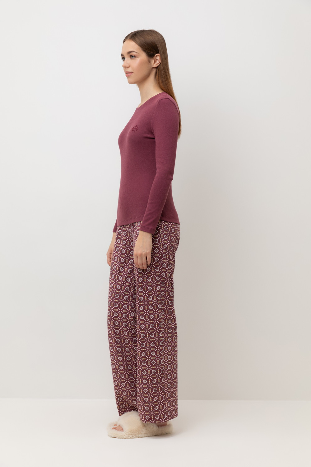 Лонгслив из мягкого эластичного трикотажа в рубчик и брюки из высококачественного гребенного хлопка - это идеальное сочетание уютного комфорта.