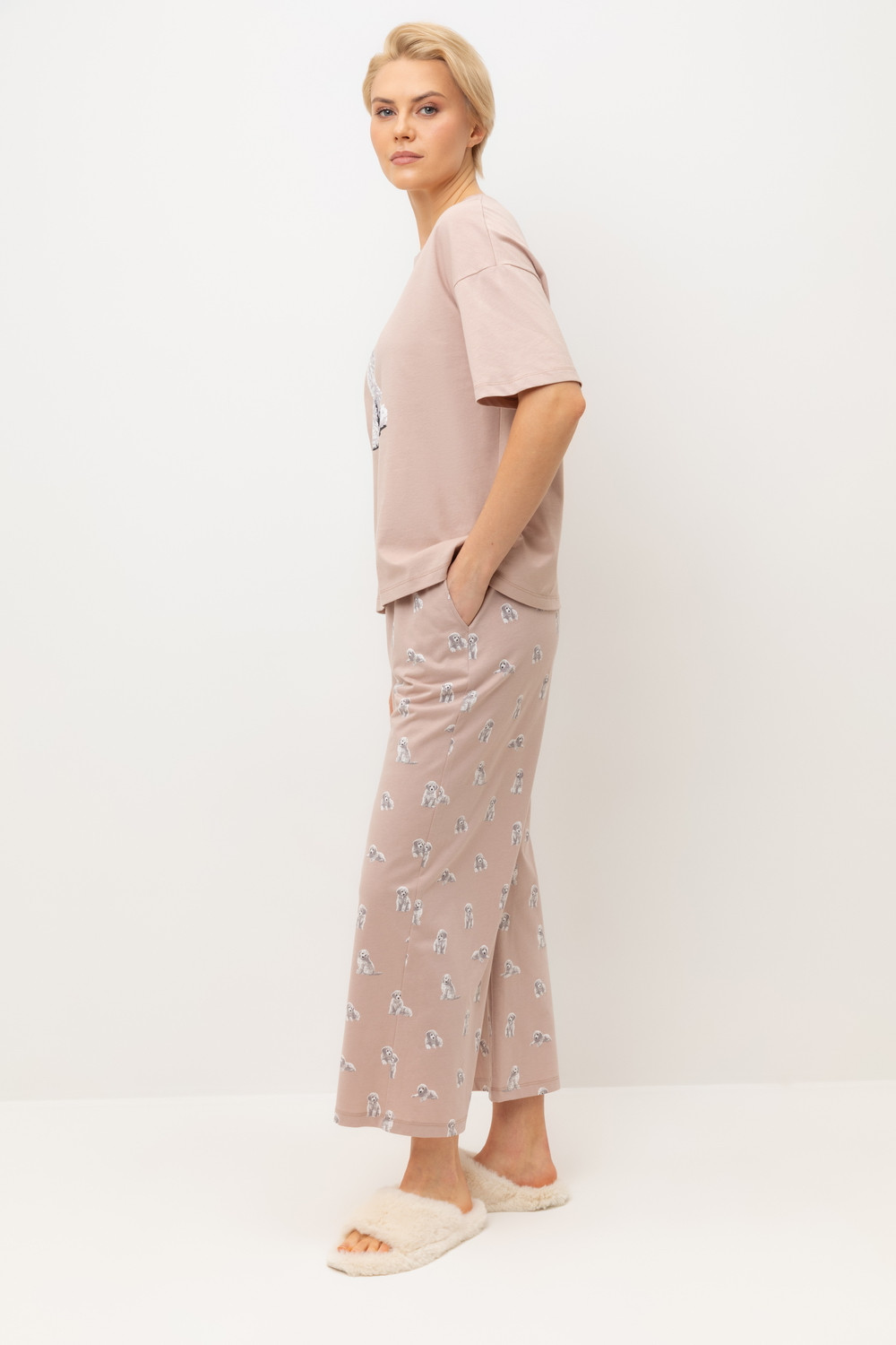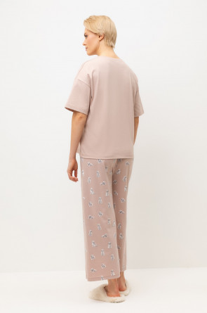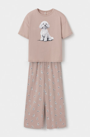 Комплект из высококачественного гребенного хлопка. Мягкий на ощупь принт на футболке выполнен на основе водных красок, что обеспечивает устойчивость к многократным стиркам. Комплект дополняют укороченные брюки с удобным поясом на резинке и практичными карманами.