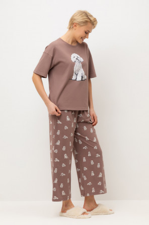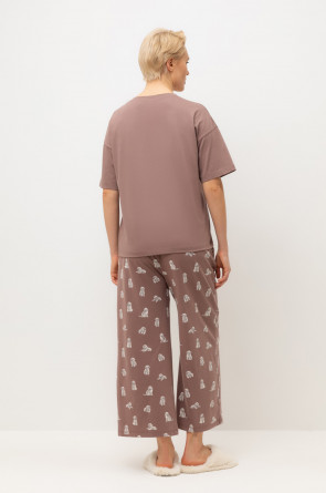 Комплект из высококачественного гребенного хлопка. Мягкий на ощупь принт на футболке выполнен на основе водных красок, что обеспечивает устойчивость к многократным стиркам. Комплект дополняют укороченные брюки с удобным поясом на резинке и практичными карманами.