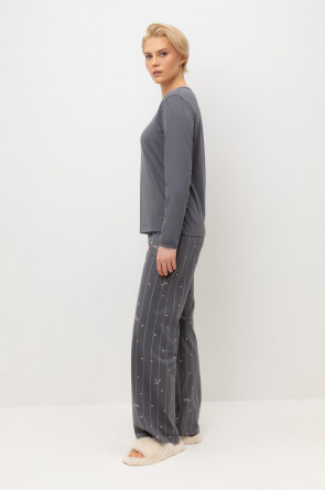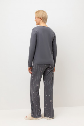 Комплект из высококачественного гребенного хлопка. Брюки с удобным поясом на резинке добавляют комфорт и удобство домашнему отдыху.