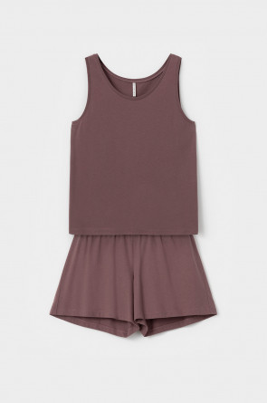 Комплект из хлопка с добавлением нежнейшего модала. Свободный силуэт и мягкий пояс обеспечат комфорт во время сна и отдыха.