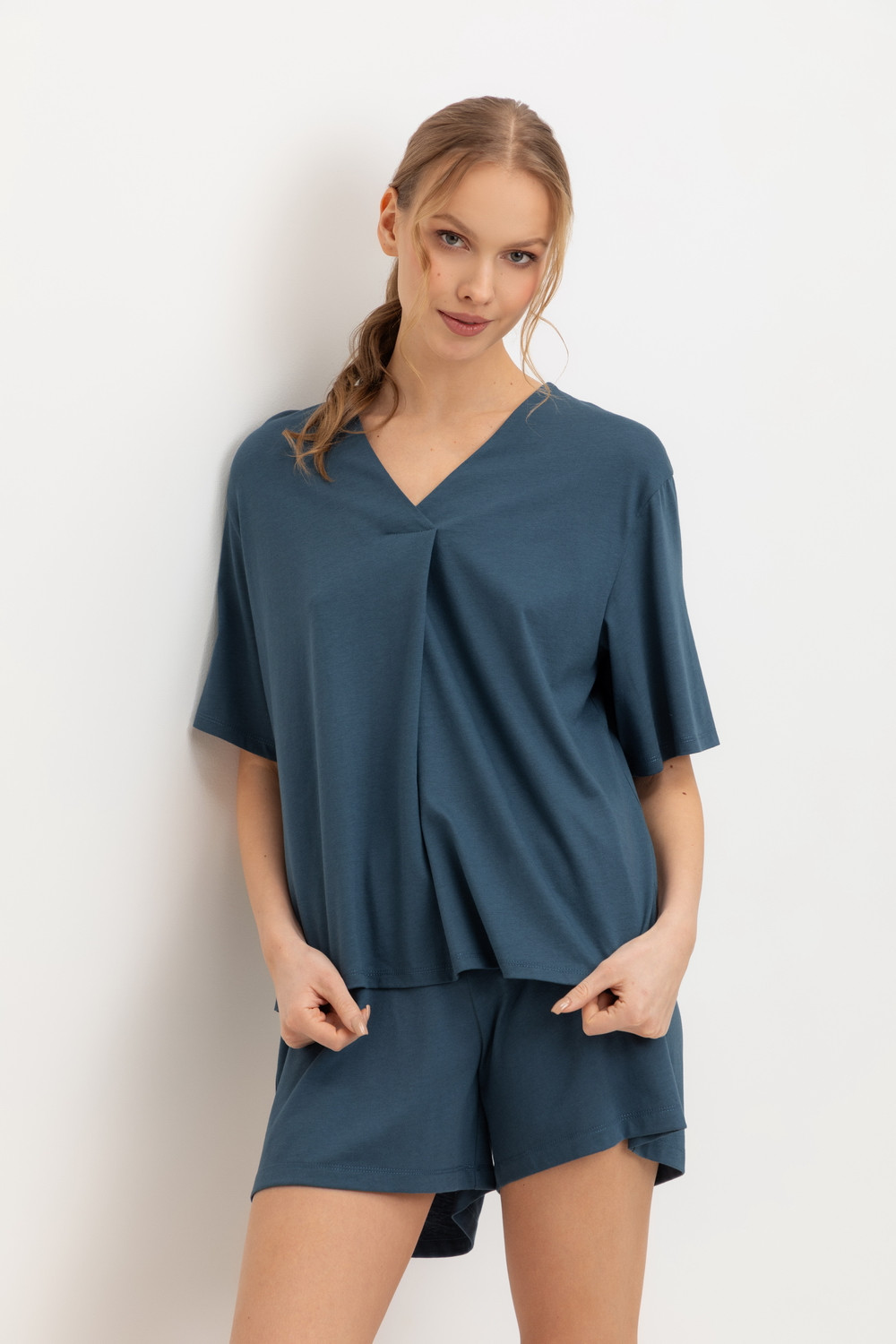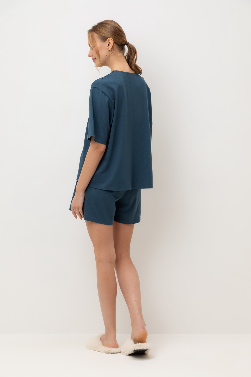 Комплект из хлопка с добавлением нежнейшего модала. Свободный силуэт и мягкий пояс обеспечат комфорт во время сна и отдыха.