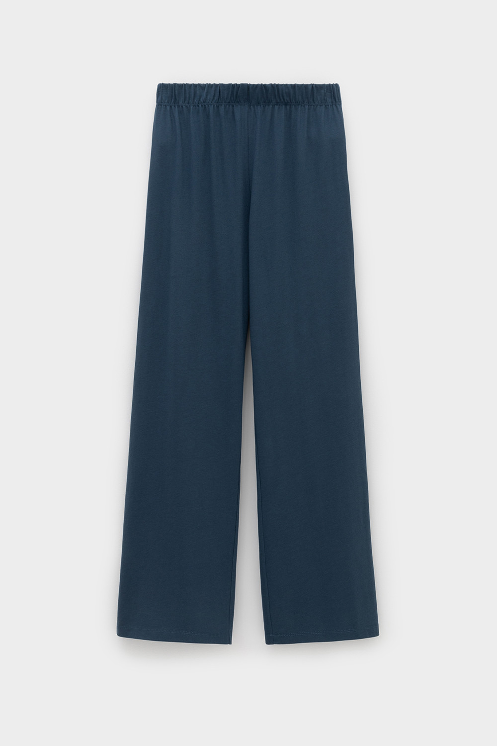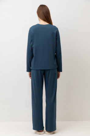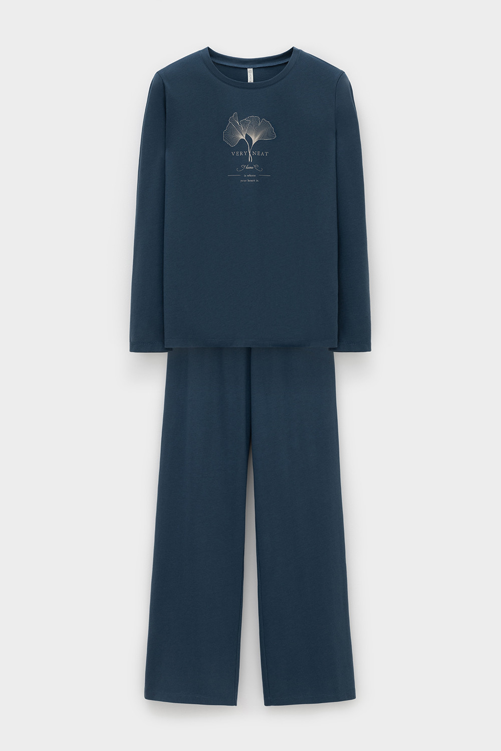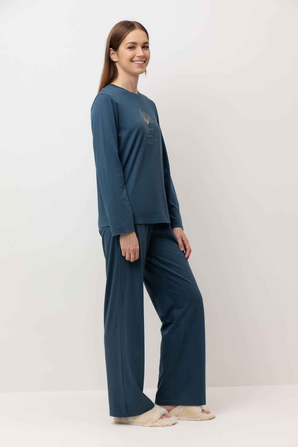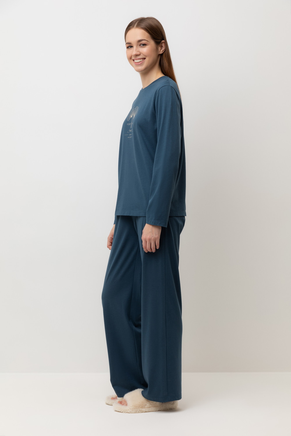Комплект из хлопка с добавлением нежнейшего модала. Свободный крой брюк и комфортная посадка лонгслива обеспечивают легкость и свободу движений.