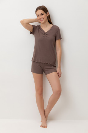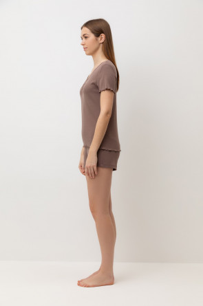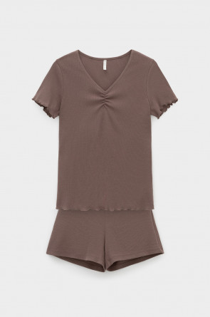 Комплект из нежного хлопкового трикотажа в рубчик. Мягкий и эластичный на ощупь трикотаж обеспечивает легкость и приятное облегание.