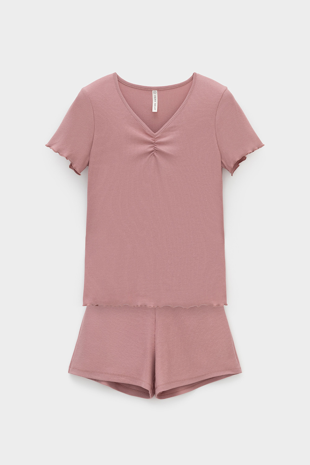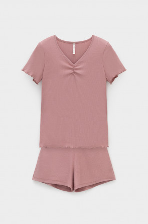 Комплект из нежного хлопкового трикотажа в рубчик. Мягкий и эластичный на ощупь трикотаж обеспечивает легкость и приятное облегание.