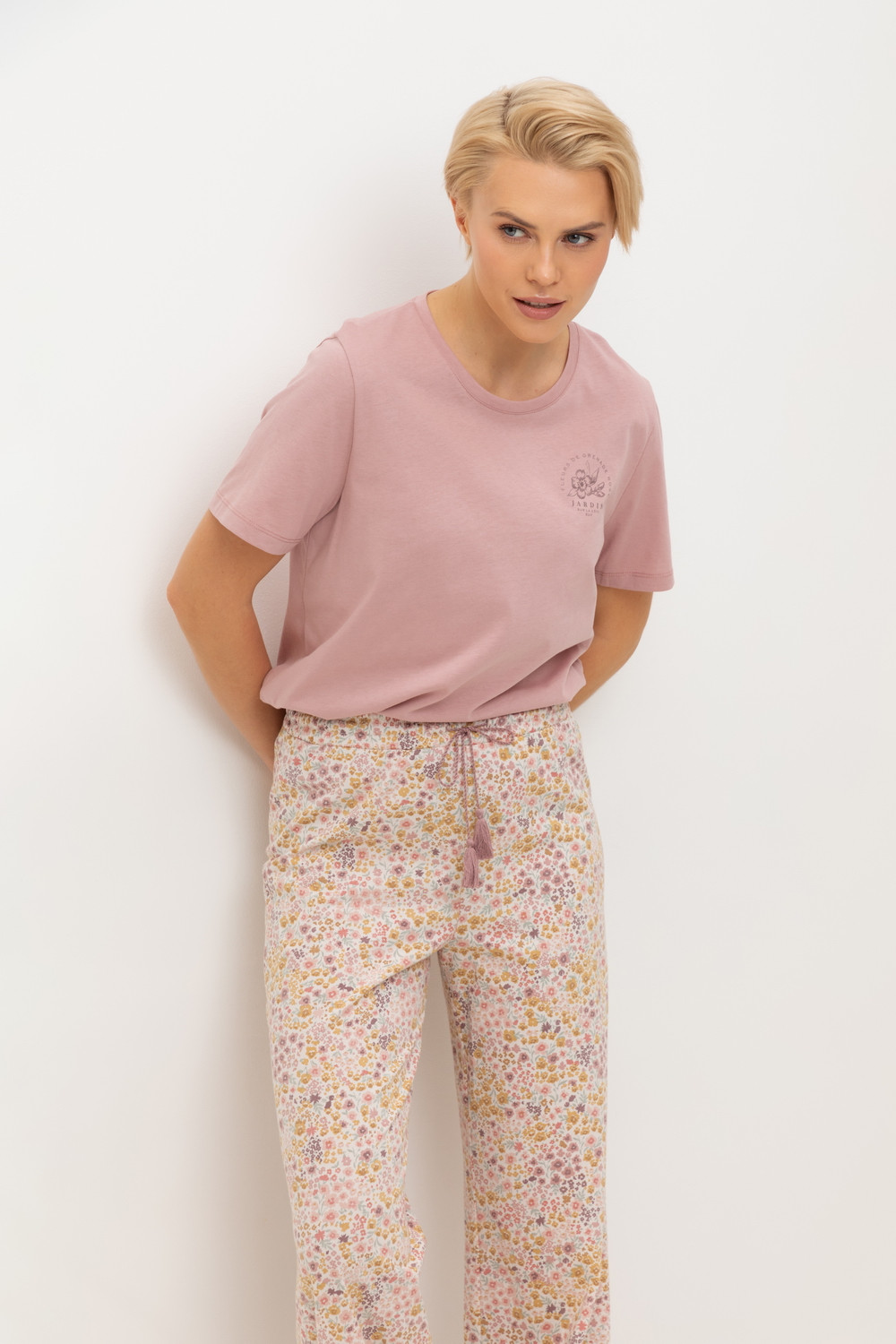 Комплект из высококачественного гребенного хлопка. Брюки с удобным поясом на резинке добавлят удобства отдыху