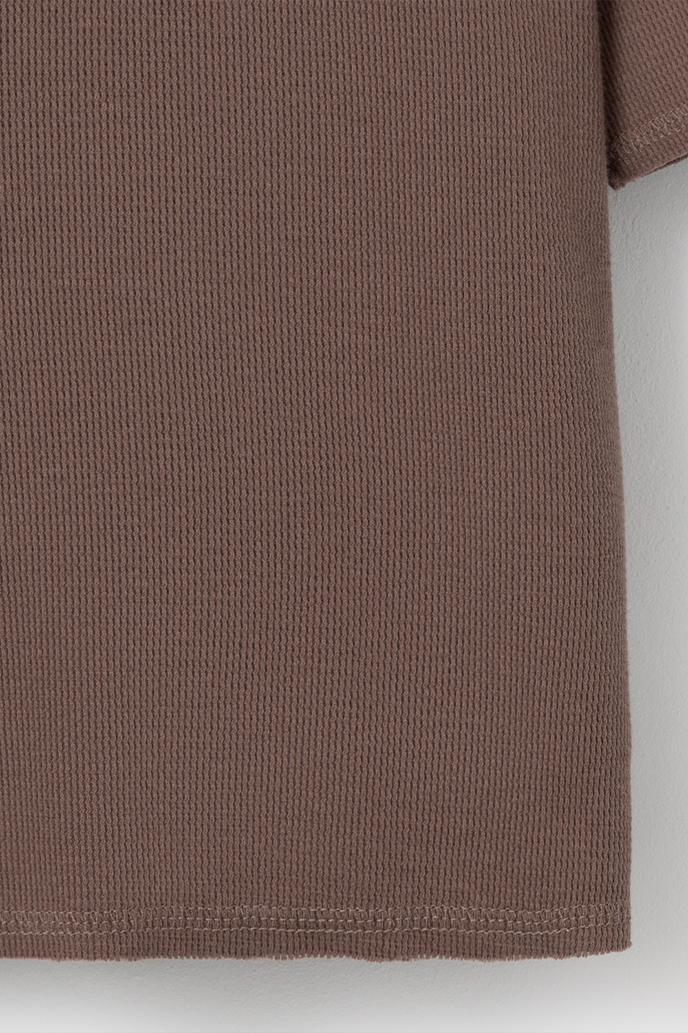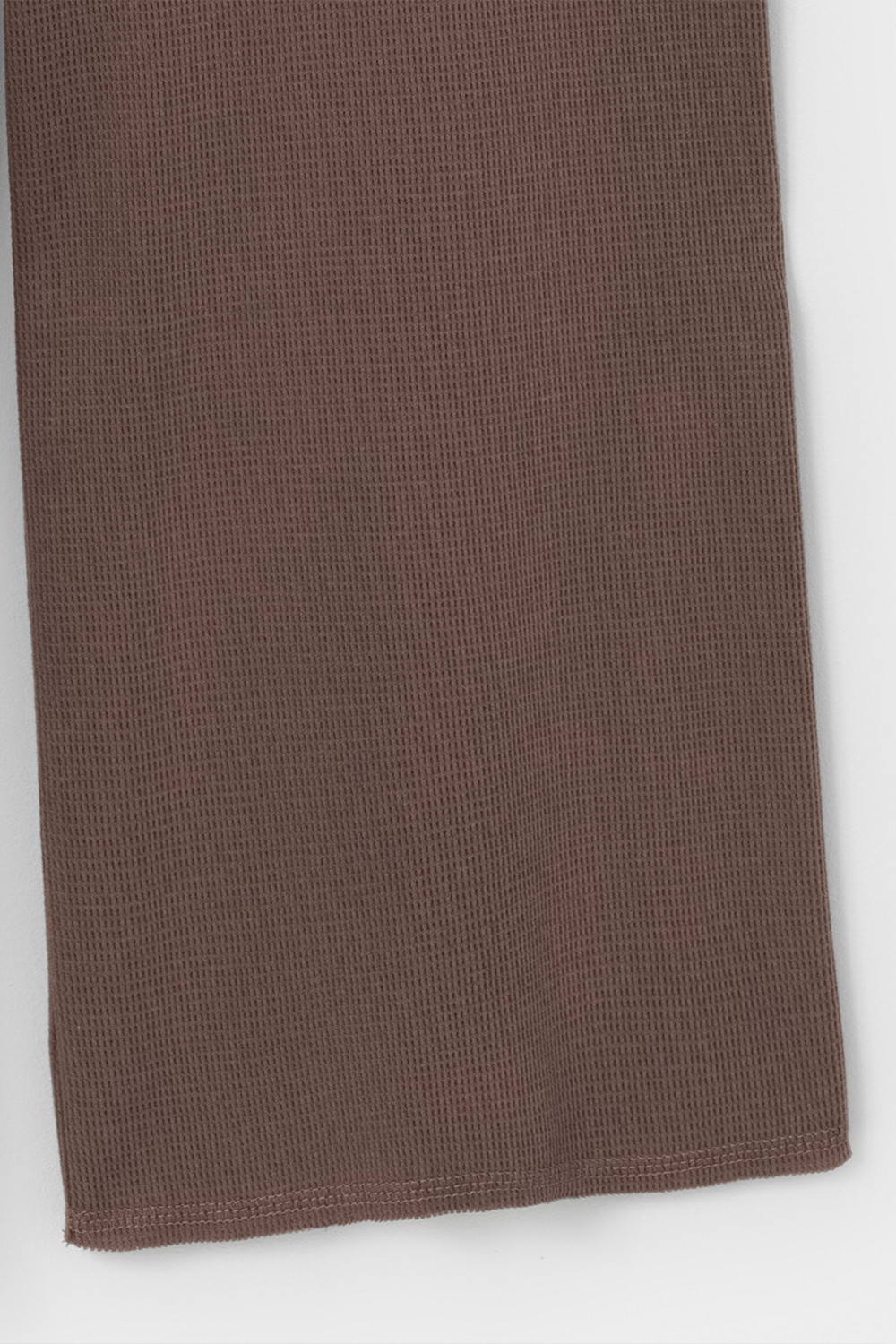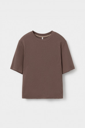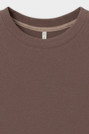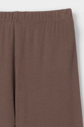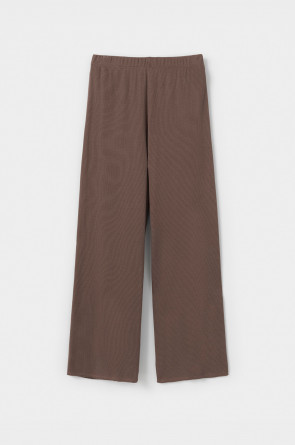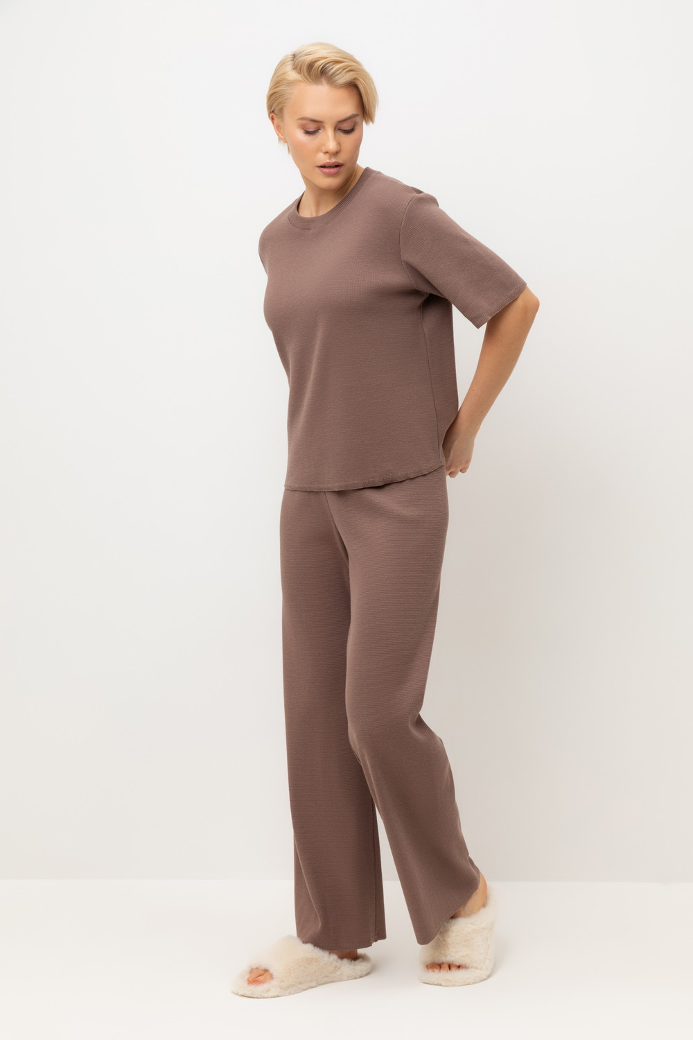 Комплект из объемного трикотажа с добавлением эластичных волокон. Свободный силуэт и мягкий пояс брюк обеспечат комфорт во время сна и отдыха.