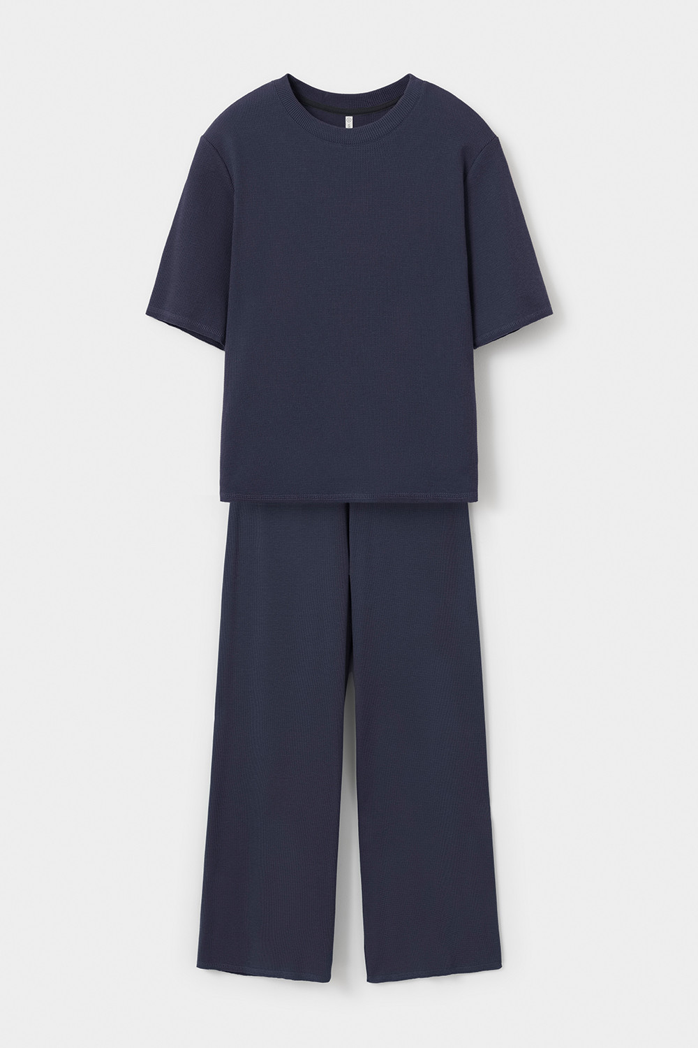 Комплект из объемного трикотажа с добавлением эластичных волокон. Свободный силуэт и мягкий пояс брюк обеспечат комфорт во время сна и отдыха.