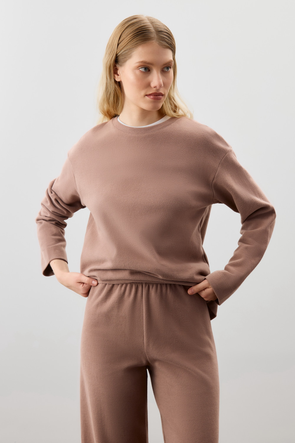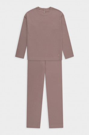 Комплект из 100% хлопка. Специальная обработка полотна пич эффектом придает мягкость, бархатистость и легкий ворс, а брюкии свободный крой обеспечивают легкость и свободу движений.