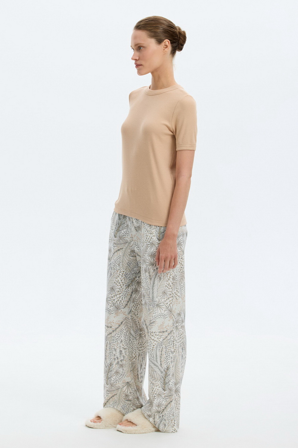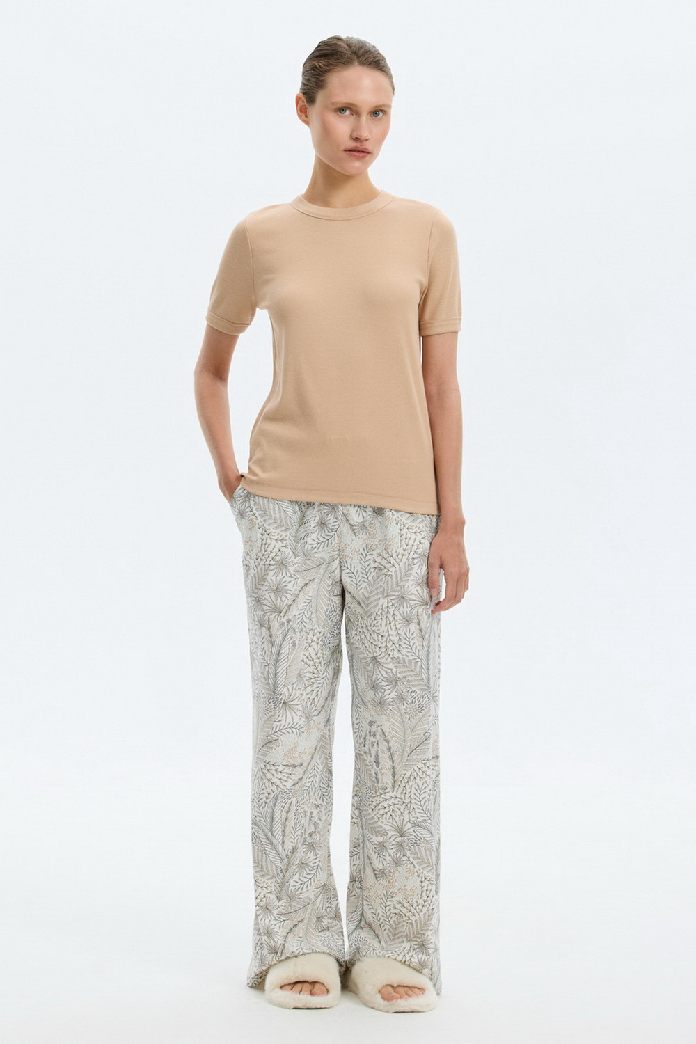 Футболка из мягкого эластичного трикотажа в рубчик и брюки из высококачественного гребенного хлопка - это идеальное сочетание уютного комфорта.
